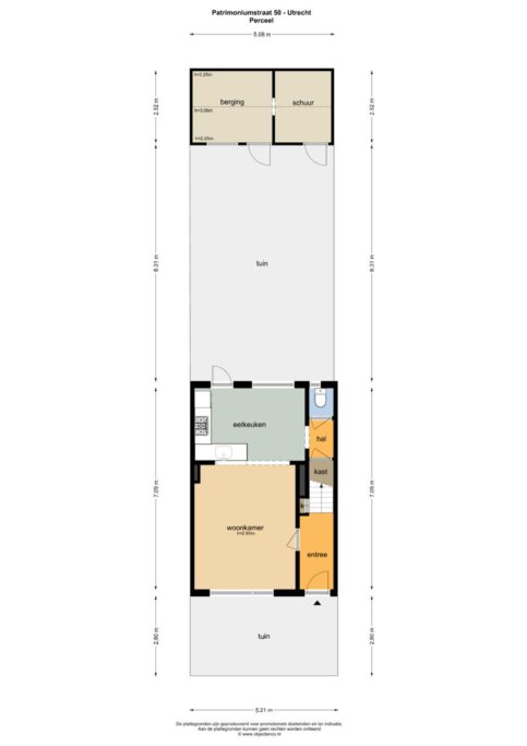 You enter through the spacious front garden into the hallway with the meter cupboard and staircase. Through the door on the left you enter the living room. The living room is bright and rectangular, with large windows at the front. At the rear of the house you will find the kitchen-diner. The kitchen was installed in 2019 and is equipped with a gas hob, extractor hood, combi oven, dishwasher and refrigerator. From the kitchen you can access the second hallway where the separate toilet is located. The kitchen also provides direct access to the back garden. The deep back garden is largely tiled and designed to be low maintenance. At the end of the garden there is a large stone shed, divided into two spaces: ideal for bicycles, tools or extra storage. Through the alley at the back you have your own private rear entrance.