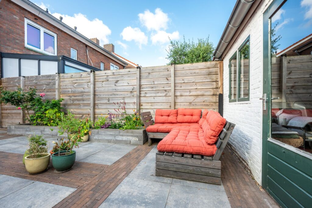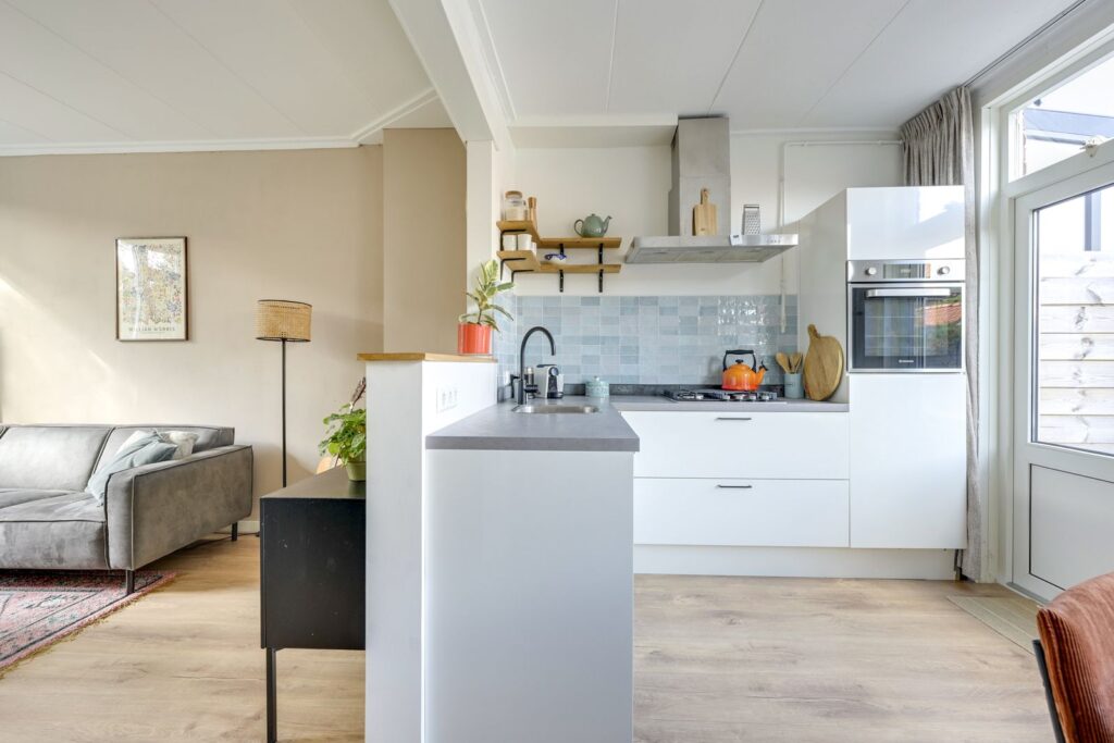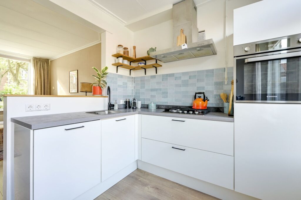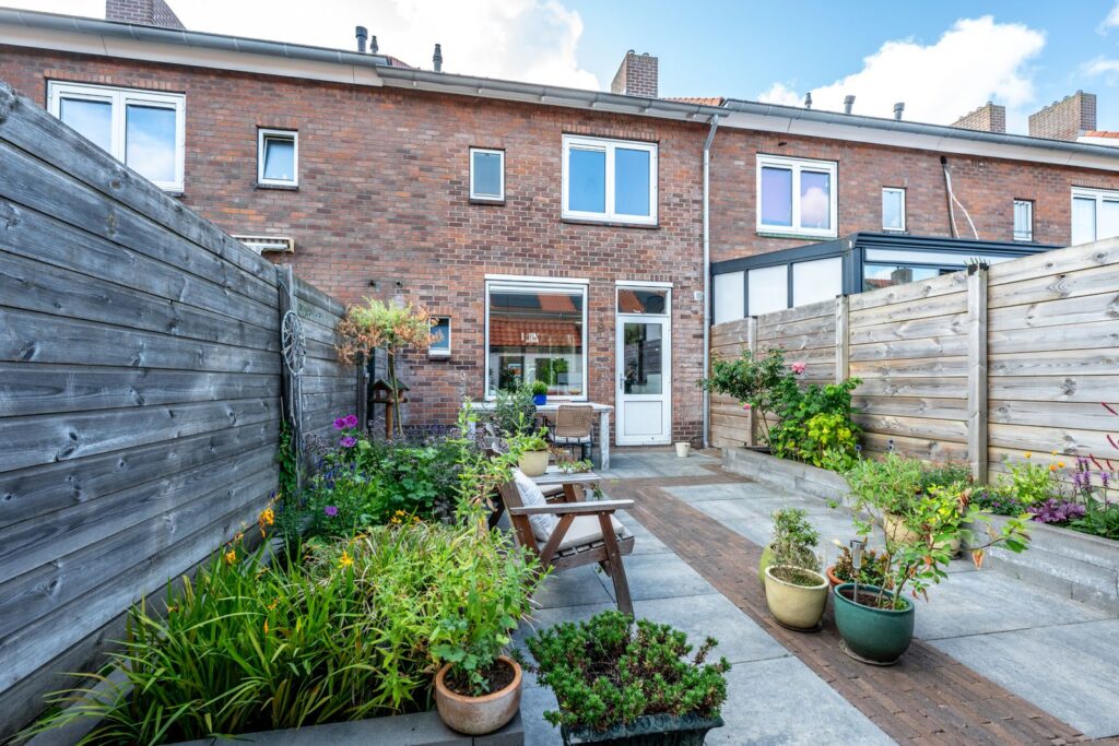 Je komt binnen via de ruime voortuin en stapt de hal binnen met meterkast en trapopgang. Via de deur aan de linkerkant loop je zo de woonkamer binnen. De woonkamer is licht en rechthoekig van opzet, met grote ramen aan de voorzijde. Aan de achterzijde bevindt zich de eetkeuken. De keuken is geplaatst in 2019 en voorzien van een gaskookplaat, afzuigkap, combi-oven, vaatwasser, en een koelkast. vanuit de keuken kan je naar de tweede hal waar ook de separate toilet is. Via de keuken heb je direct toegang tot de achtertuin. De diepe achtertuin is grotendeels betegeld en onderhoudsvriendelijk aangelegd. Achter in de tuin staat een grote stenen schuur, opgedeeld in twee ruimtes: ideaal voor fietsen, gereedschap of extra opslag. Via de steeg aan de achterzijde heb je een eigen achterom.
