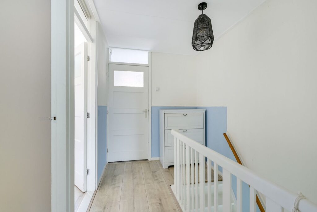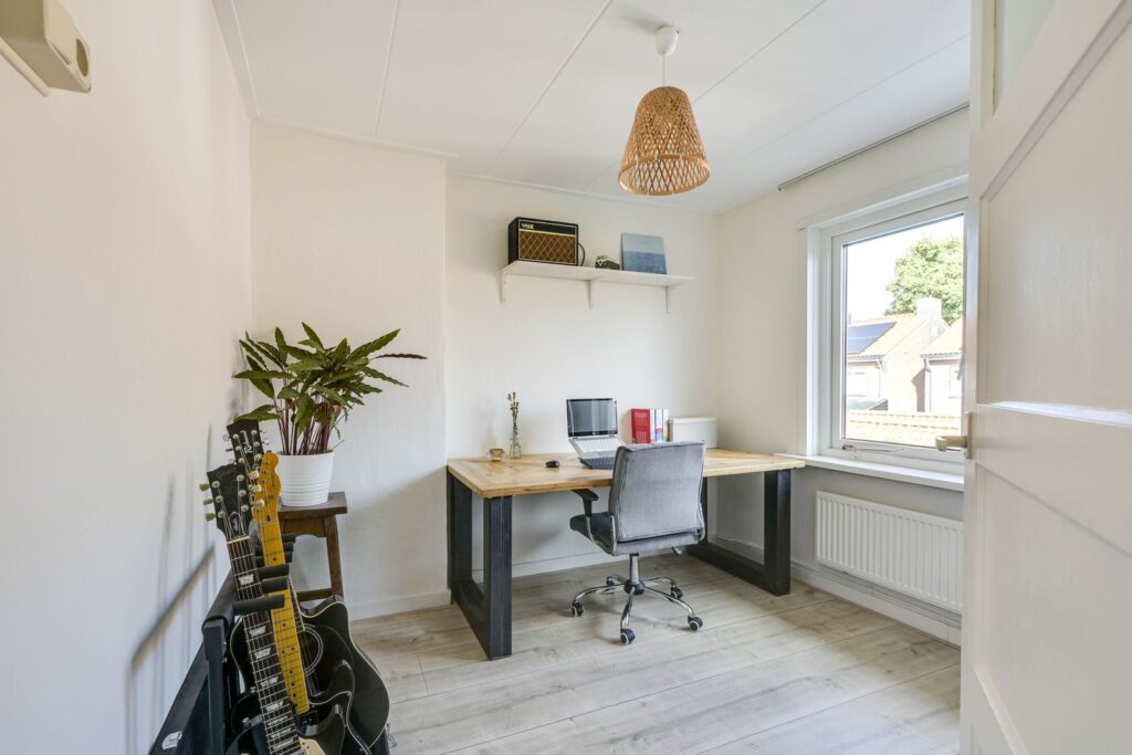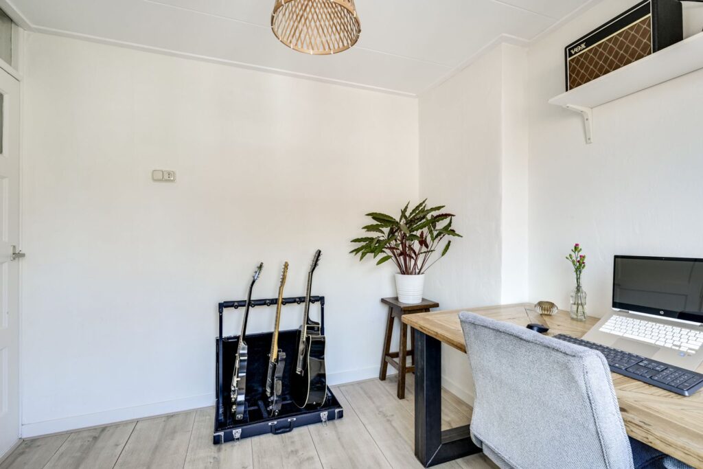 Via de trap bereik je de overloop met toegang tot een ruime slaapkamer met uitzicht op het groen in de straat aan de voorzijde. Tegenover de trap zit ook nog een fijne werkkamer aan de rustige achterzijde, een wasruimte met wasbak en een aansluiting voor wasmachine en droger. Naast de slaapkamer kun je via de hal de badkamer in, deze is voorzien van een inloopdouche, wastafel en designradiator.