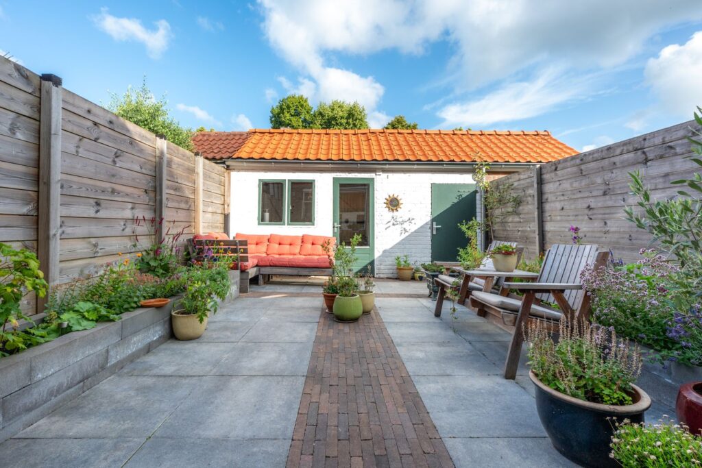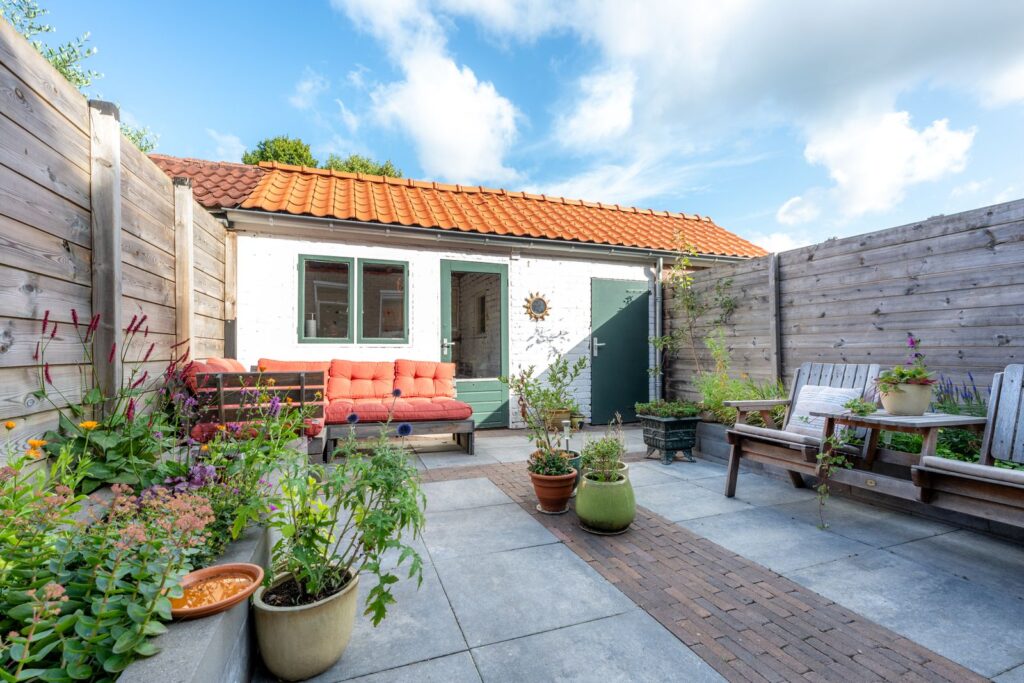 V Zonnige tuin op het Noordwesten met achterom en grote schuur (dak vernieuwd)