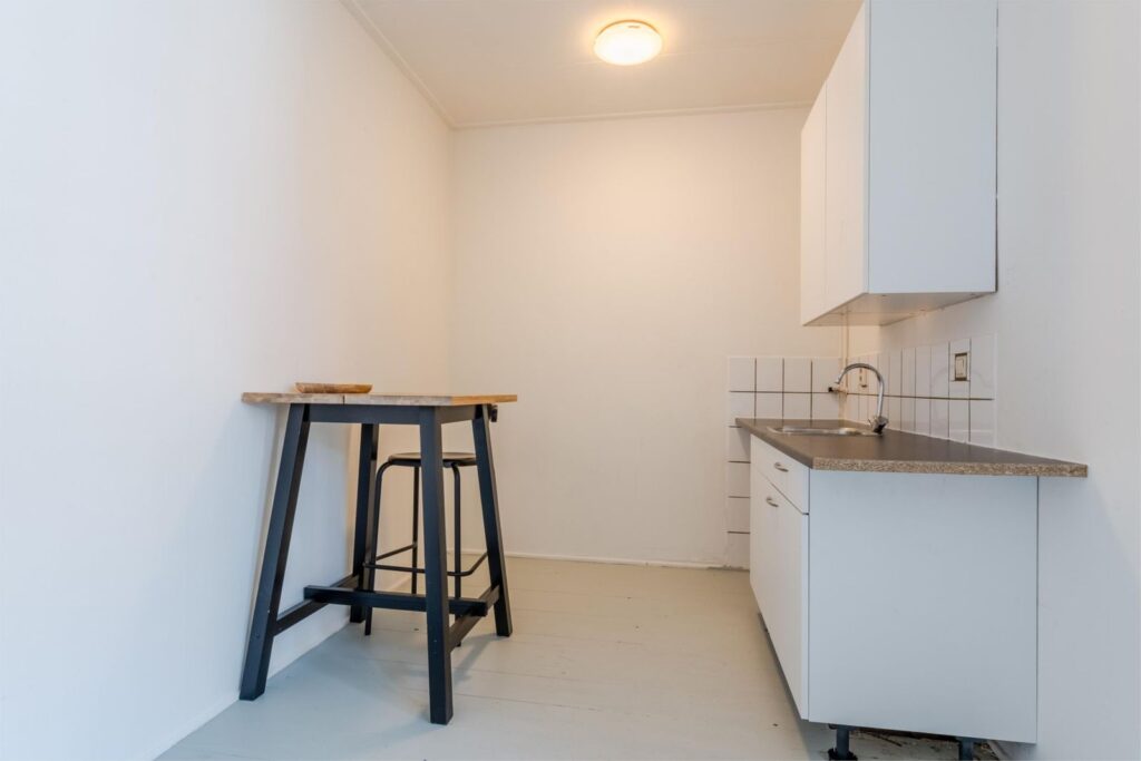 De pantry bevindt zich in de living waar ook geslapen wordt. Douche en toilet bevinden zicht bij de voordeur. Ideaal gelegen tov LUMC, Universiteiten om de hoek, CS op loopafstand en de wasserette zit ook op loopafstand : -), centrum is ca 200 meter bij de woning vandaan dus voor de gezelligheid, wat eten en shoppen zeer gunstig gelegen. Inboedel kan overgenomen worden tegen een kleine vergoeding. Kom gerust kijken dan zie je hoe ruimtelijk deze ruimtes zijn.