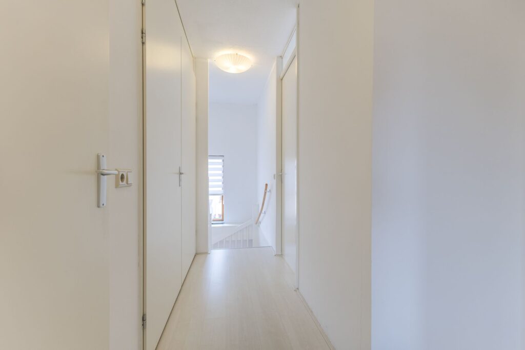 Op de tweede verdieping bevinden zich drie slaapkamers, badkamer, technische ruimte en een inbouwkast. In de technische ruimte bevindt zich de cv-ketel, warmte terugwin unit WTW en is ook geschikt voor Wasautomaat en Droger. De inbouwkast is voorzien van stalen rekken voor opslag van zware materialen.