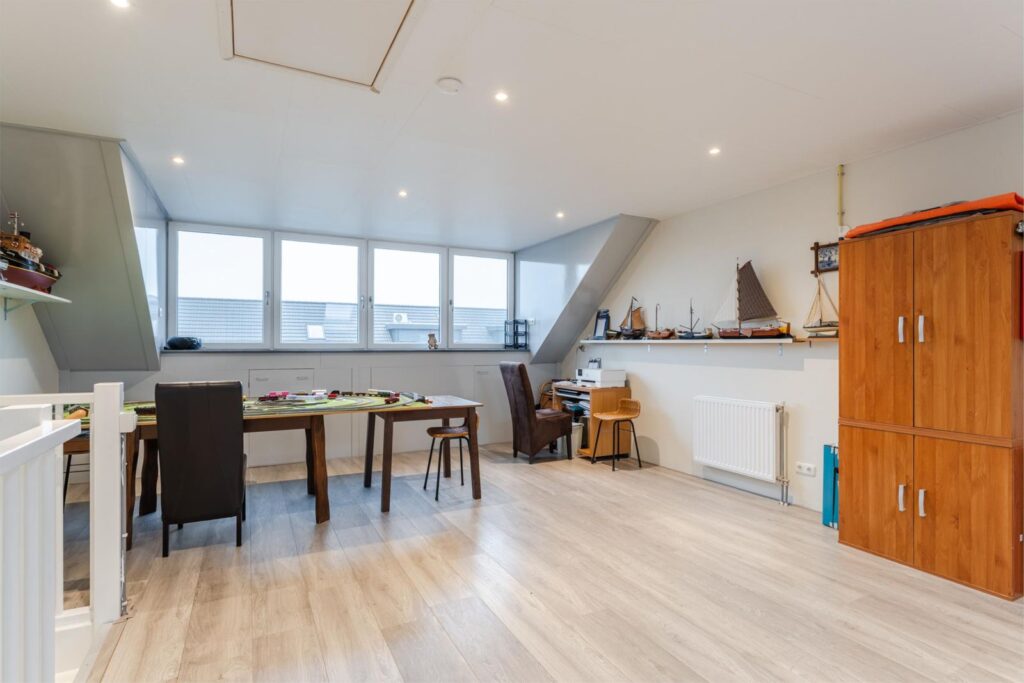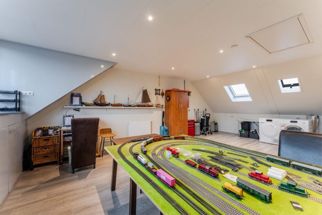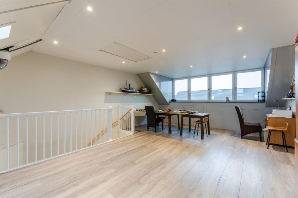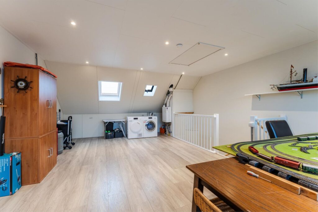Zolder: ruime zolder met dakkapel, geschikt om twee extra kamers te realiseren, plus een vliering bereikbaar via vlizotrap.