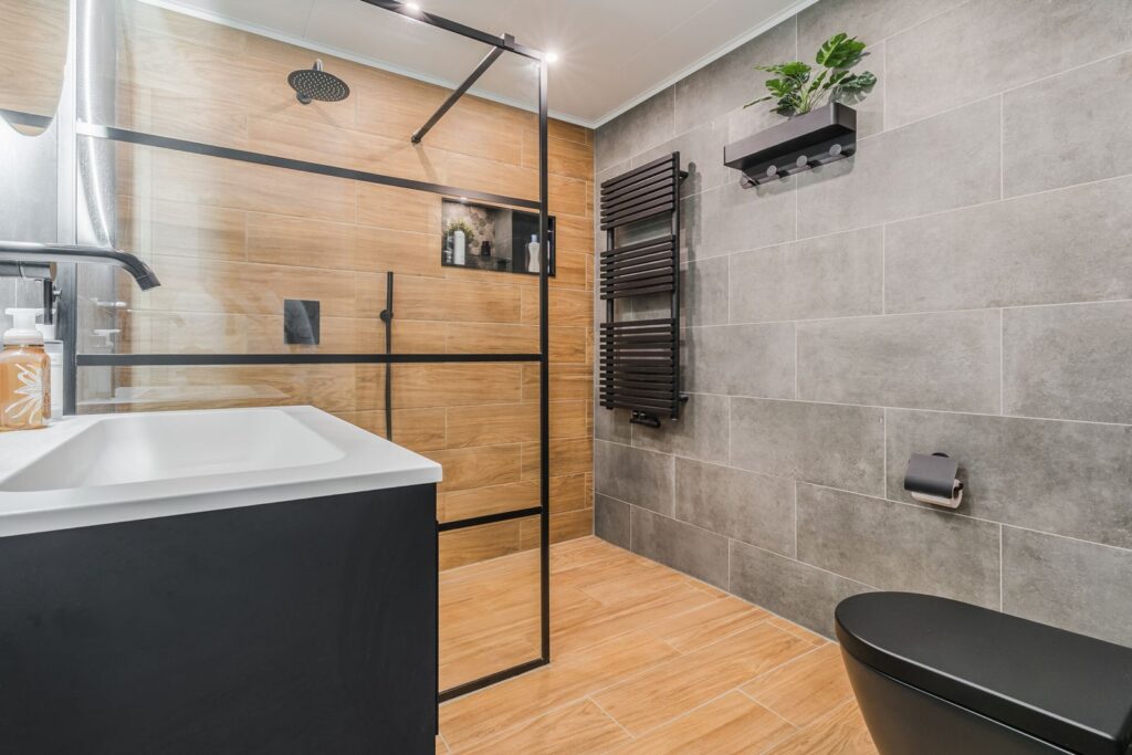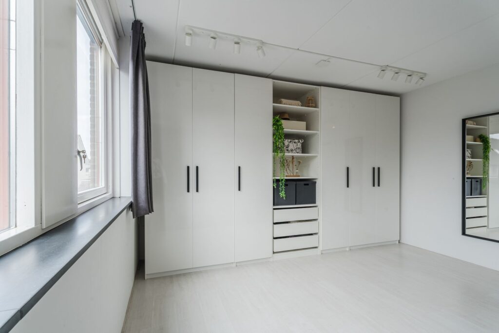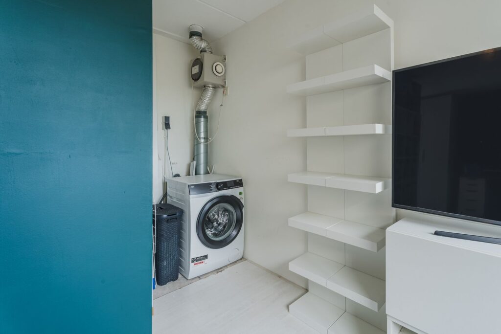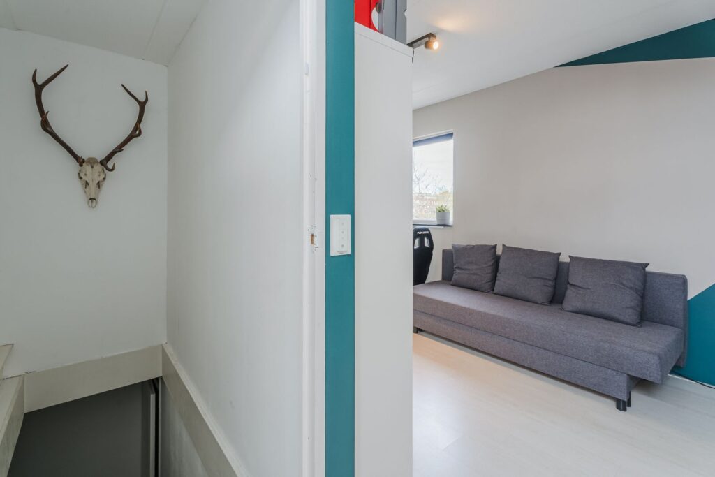 Daarnaast vind je op deze verdieping de moderne badkamer, voorzien van een inloopdouche, wastafelmeubel en toilet. Op de overloop is een grote kastenwand aanwezig met volop bergruimte.