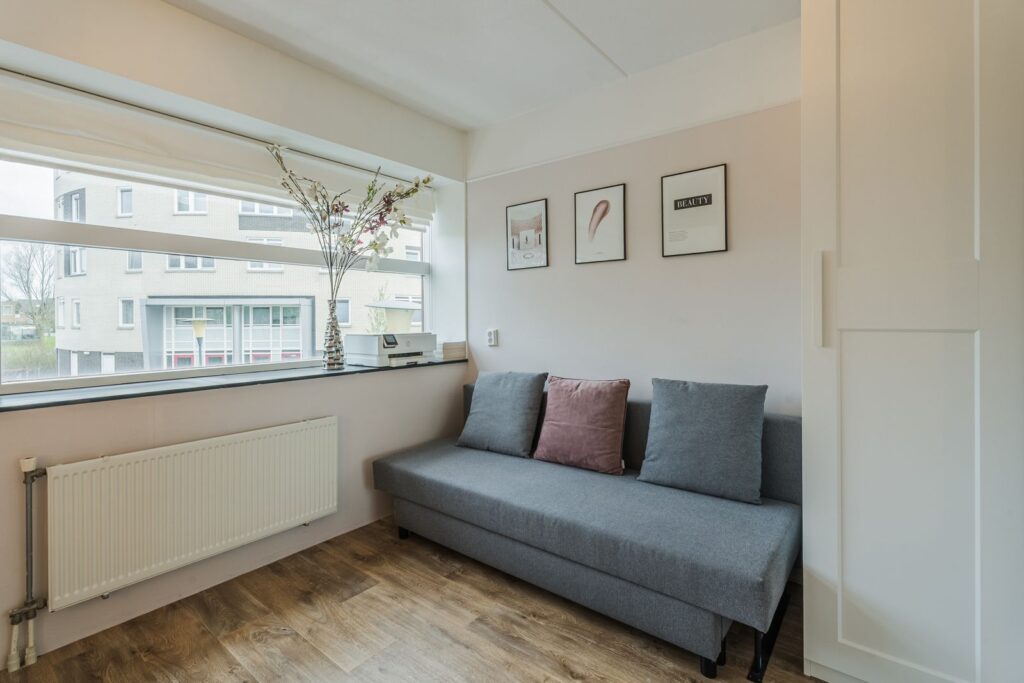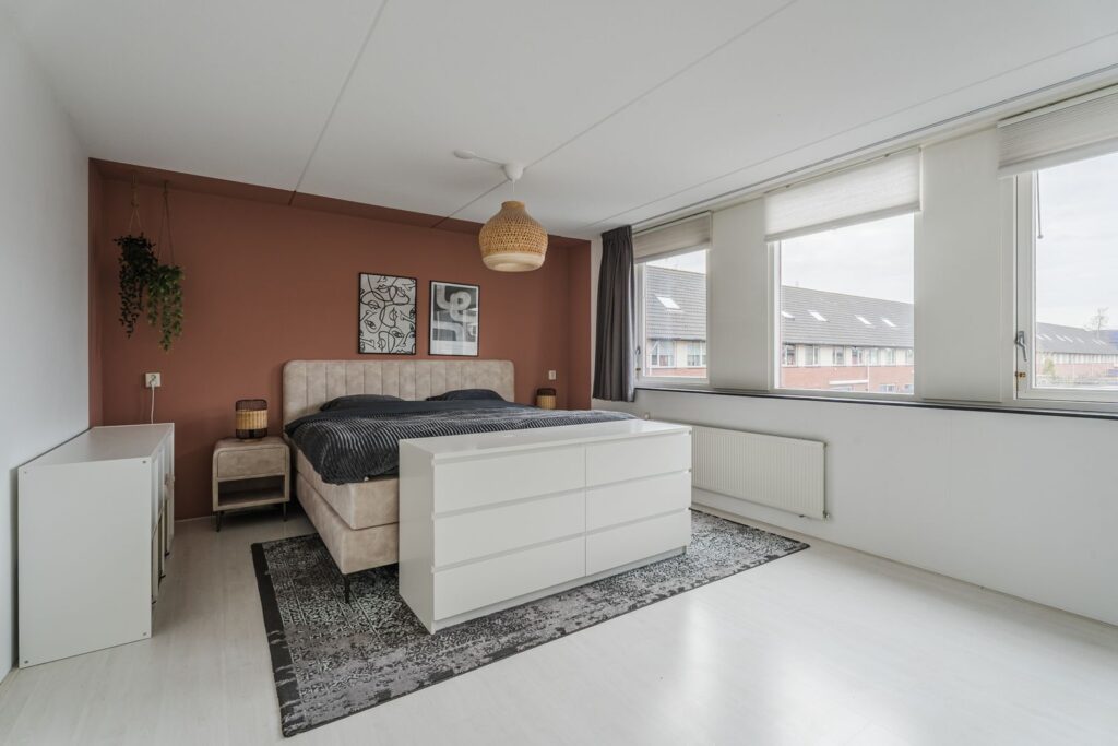 Op de eerste verdieping bevinden zich twee slaapkamers. De kleinere slaapkamer ligt aan de voorzijde, de ruime hoofdslaapkamer aan de tuinzijde. De hoofdslaapkamer is groot genoeg om te splitsen, waardoor je eenvoudig een extra vierde slaapkamer creëert.