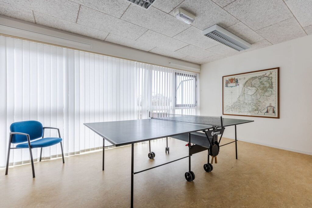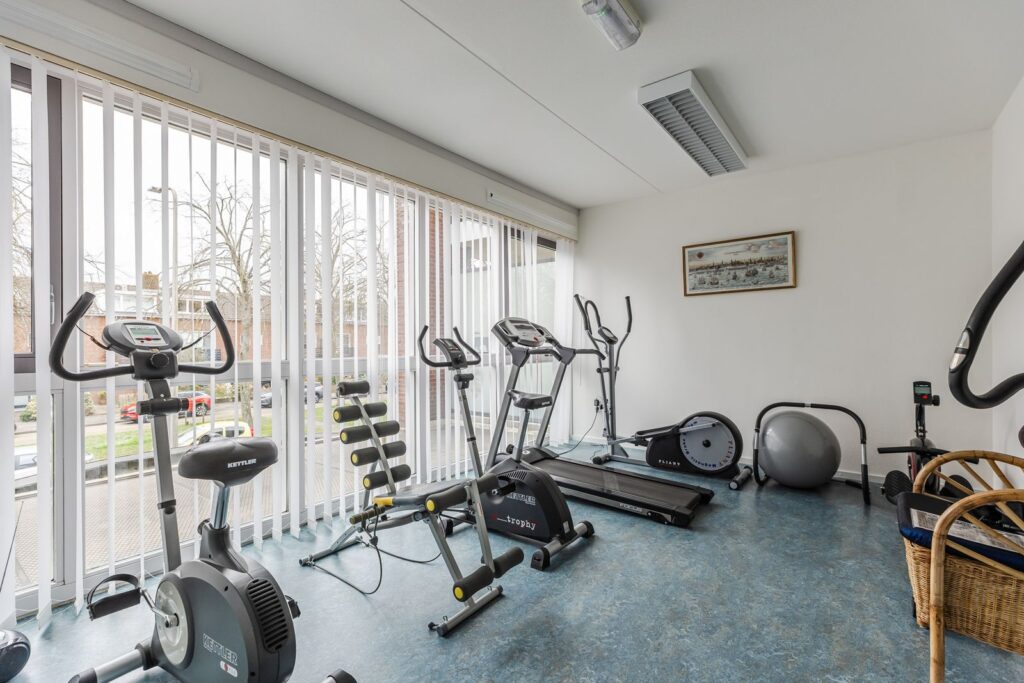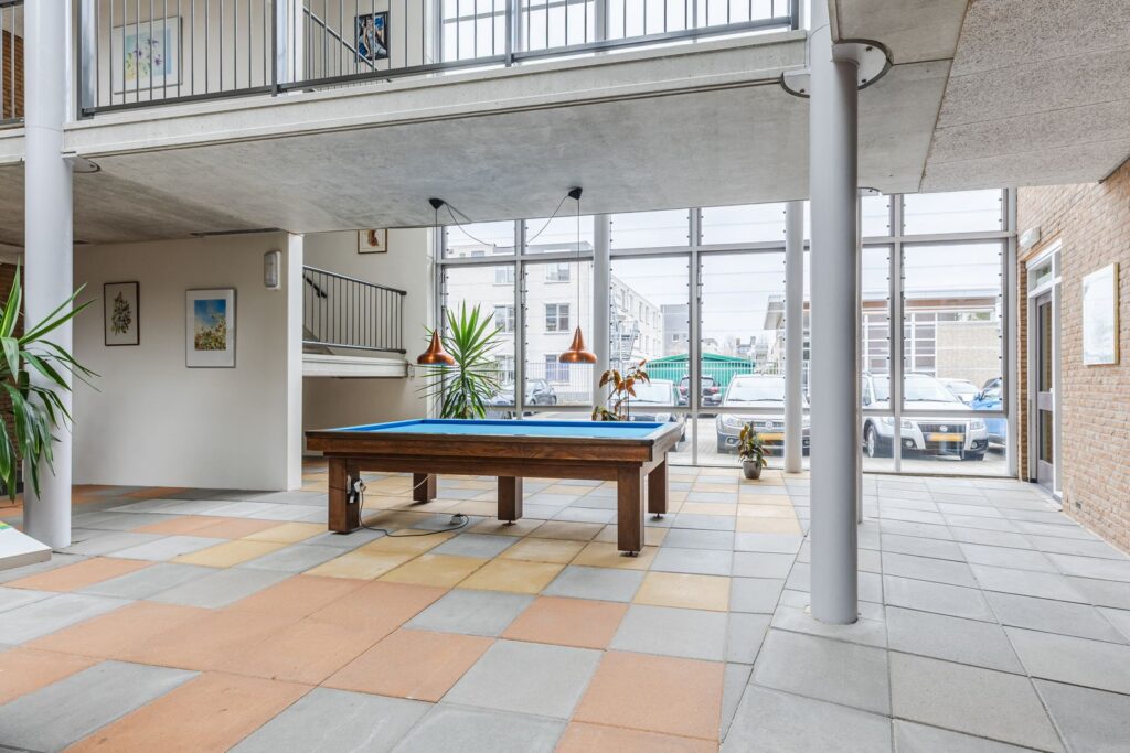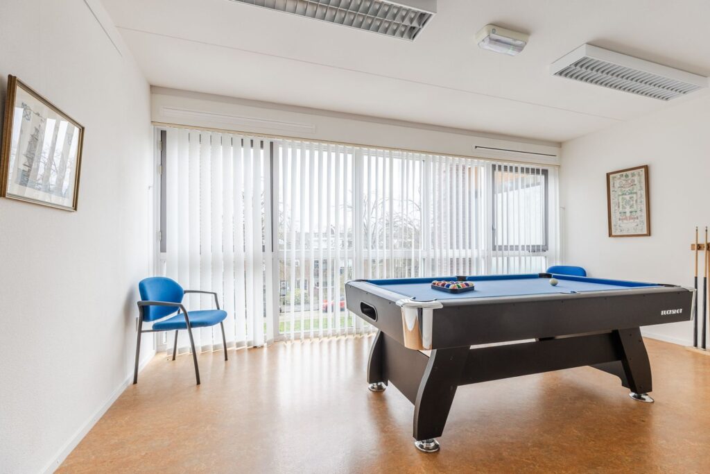 In het Atrium bevinden zich de deuren van de begane grond appartementen, de toegang naar de bergingen en een “beperkte” Scootmobiel opstelplaats. In het Atrium staat ook een biljarttafel en is de ruimte geschikt om er gezamenlijke activiteiten te organiseren. In het complex hebben we een aantal recreatieruimten waar sportieve activiteiten kunnen plaatsvinden, zoals tafeltennis, sporten met o.a. hometrainers, loopband , roeiapparaat en andere apparatuur. Tevens is er nog een ruimte met een pooltafel, ook leuk om met de kleinkinderen een potje poolbiljart te spelen.
