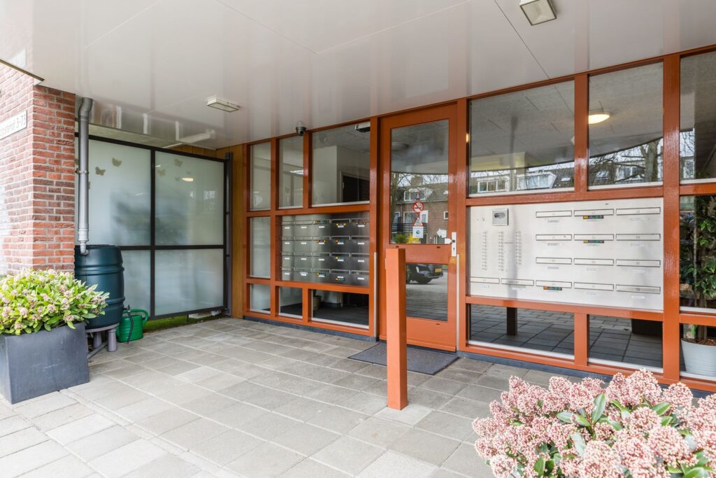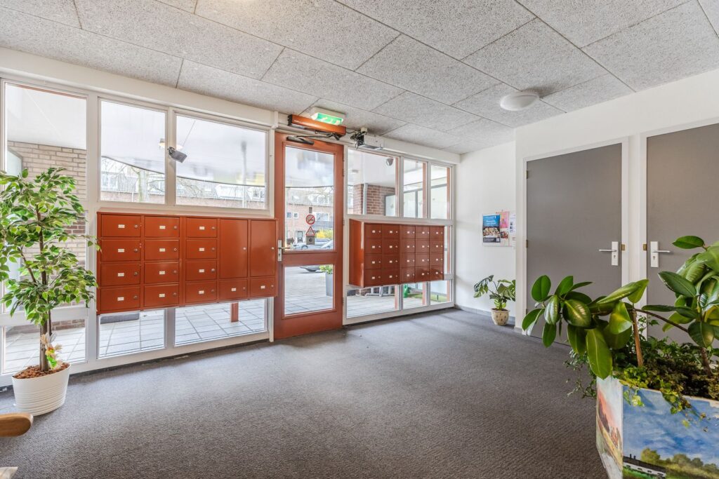 Als u het gebouw benadert treft u naast de centrale entree het bellentableau en de brievenbussen. In de afgesloten hal vind u de lift, het trappenportaal en de toegang naar het Atrium.