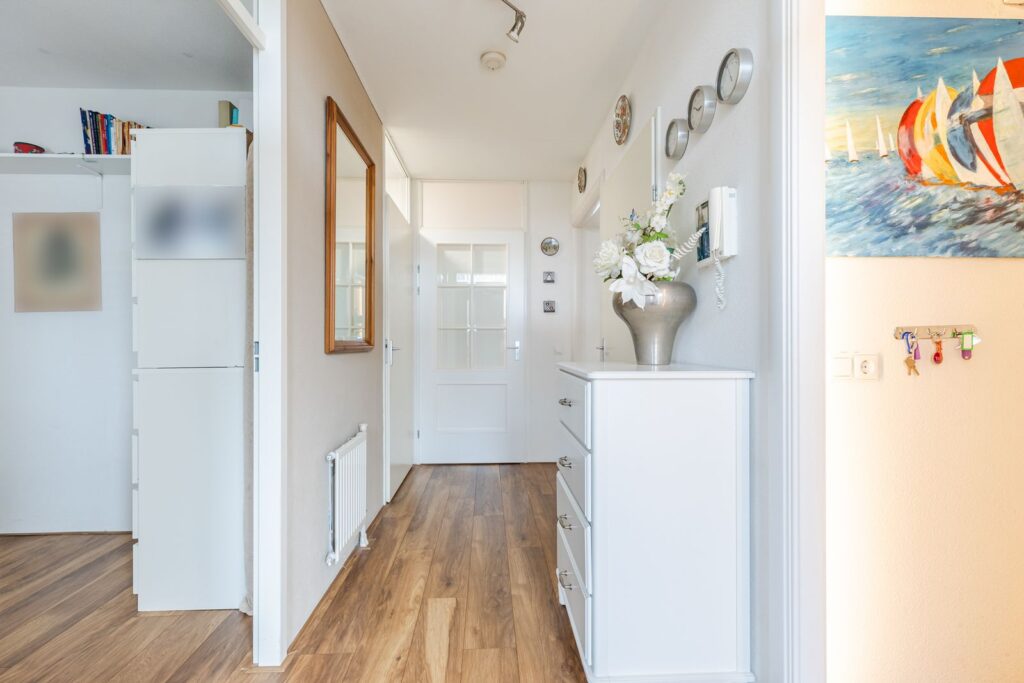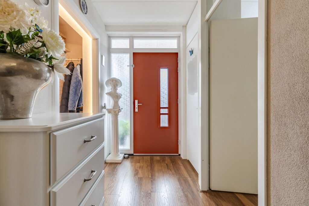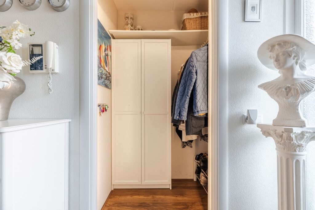 Via de ruime entree met garderoberuimte en de videofoon bereikt u alle vertrekken;