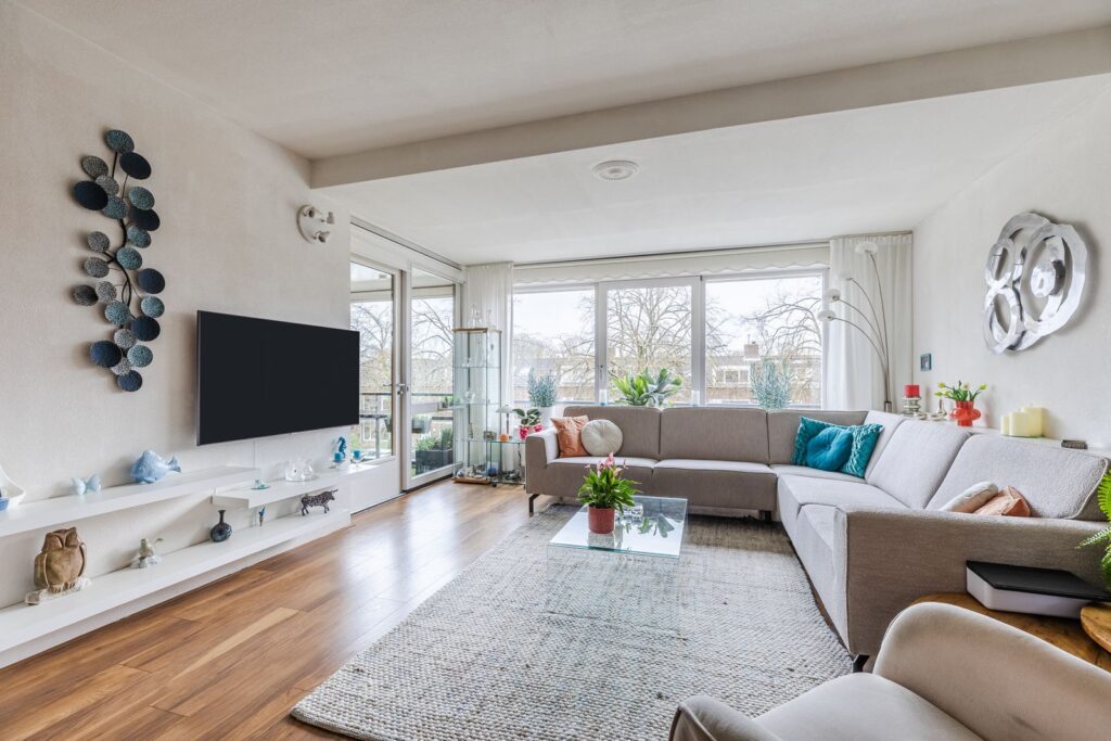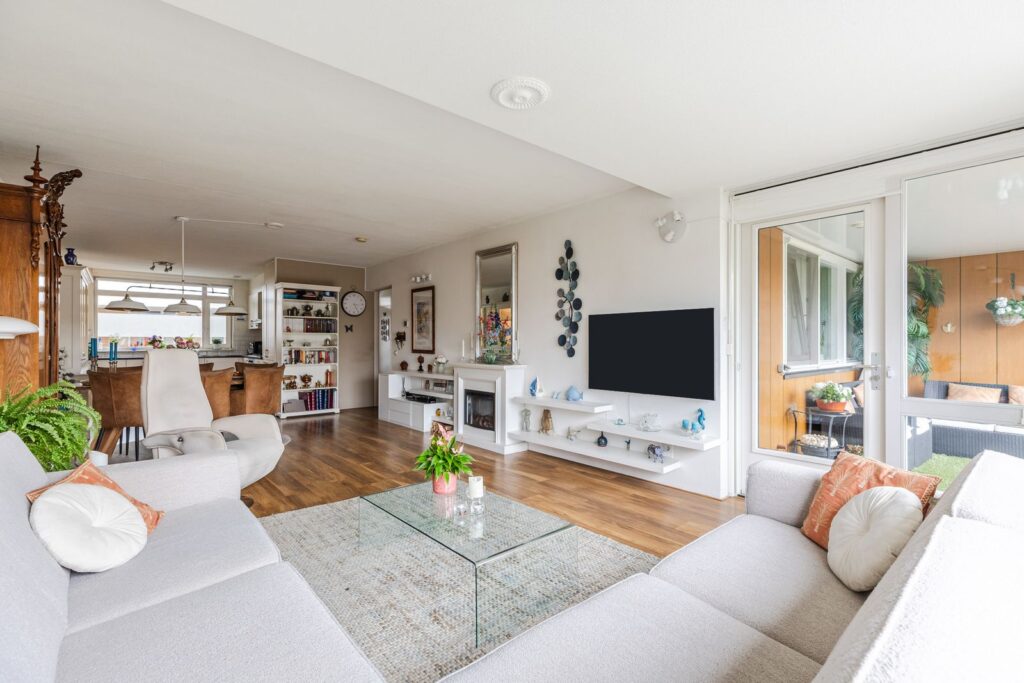 *De woonkamer, deze is royaal en heeft een deur naar het balkon op het zuidwesten een fijne plek om in alle rust buiten te zitten.