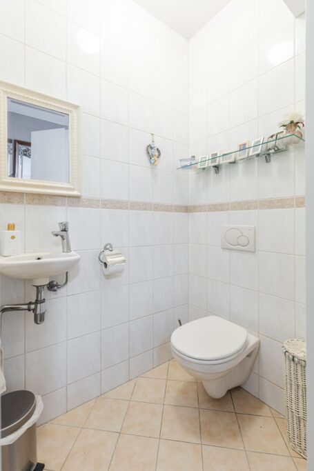 Het tweede separate toilet is uitgevoerd met wandcloset en fonteintje.