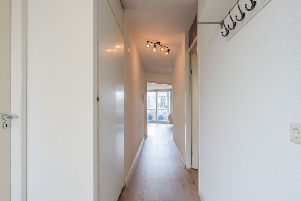 INDELING: Het appartement is gelegen op de tweede verdieping. Bij binnenkomst betreedt u de entree van de woning, waar u via de hal toegang heeft tot het toilet en alle andere vertrekken. De woning beschikt over twee slaapkamers waarvan u door 1 slaapkamer ensuite de badkamer betreedt. Deze moderne badkamer is voorzien van een wastafelmeubel, ligbad en een ruime douche.