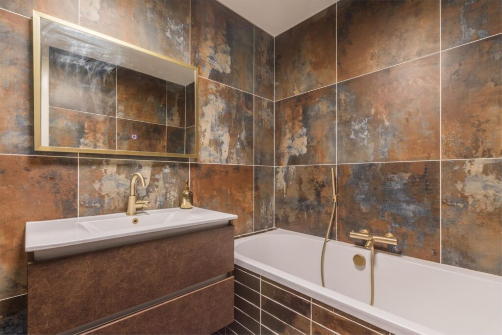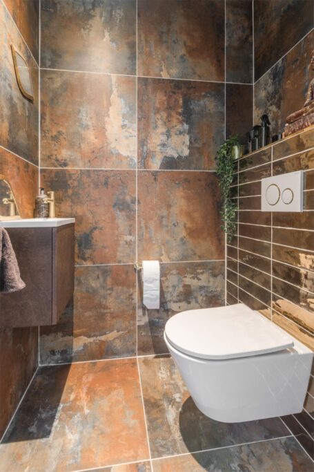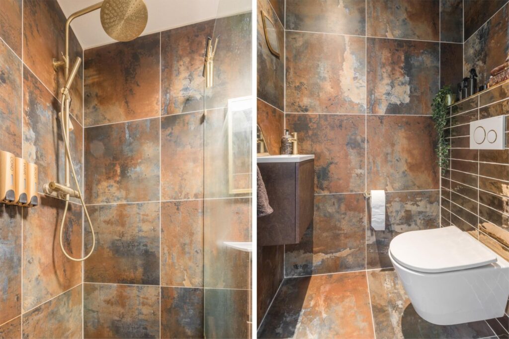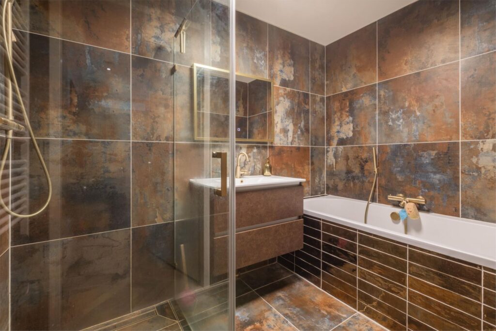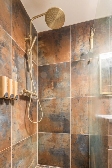 De eerste deur na de meterkast (incl. NoCalc PrefilterPlus waterontharder) leidt naar een slaapkamer aan de achterzijde. Verderop vind je het toilet met fontein en een handige wasruimte voor de wasmachine, droger en de mechanische ventilatie. Aan het eind van de gang betreed je de badkamer, voorzien van een ligbad, doucheruimte en wastafel. Deze is volledig gerenoveerd in 2021.