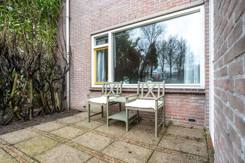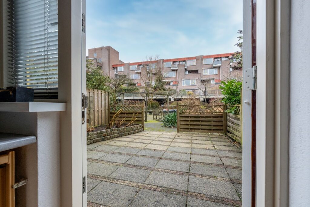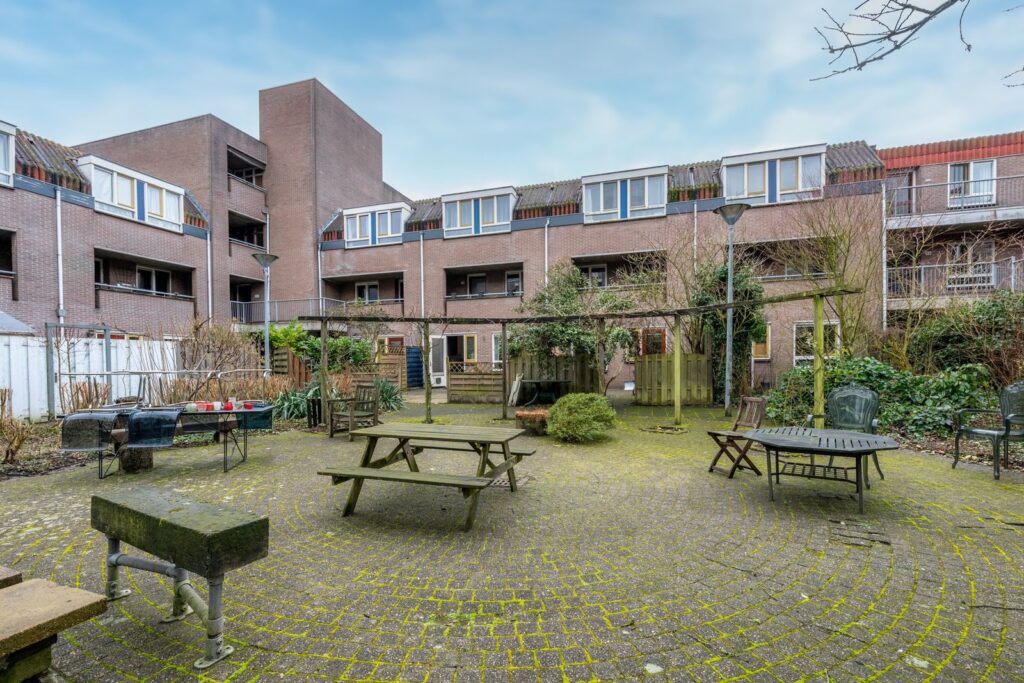 De achtertuin is onderhoudsvriendelijk aangelegd en biedt volop ruimte voor een grote tafel of een relaxte loungeset. Via het hekje aan de achterzijde loop je zo de gezamenlijke binnentuin in een verrassend ruime, groene plek met zitjes en picknicktafels. Ideaal voor een praatje met de buren of gewoon even buiten zitten. Ook aan de voorzijde heb je een eigen voortuin voor een gezellig zitje. En natuurlijk is er een externe berging voor je fietsen en extra spullen.