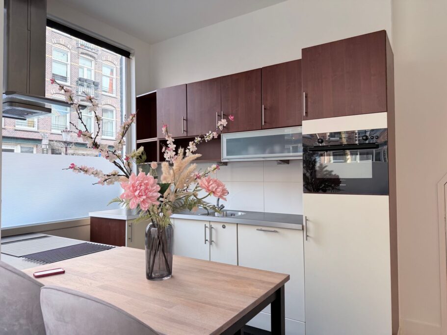 Gelegen in het gezellige Oud West op loopafstand van het Vondelpark. In deze leuke buurt zijn vele (delicatessen-)winkels, restaurants, koffietentjes en gezellige cafés te vinden met voor ieder wat wils. Het populaire cultureel en culinair centrum De Hallen bevindt zich op slechts 5 minuten fietsen. De Ten Kate markt, Overtoom en de Kinkerstraat zijn op loopafstand gelegen voor de dagelijkse boodschappen. Het Vondelpark met allerlei voorzieningen voor sport en ontspanning ligt op 3 minuten loopafstand, daarnaast is het slechts 10 minuten fietsen, of 2 tramhaltes, naar het Centrum of het Museumplein. Ook is het openbaar vervoer op loopafstand en via de Overtoom is de Ring A-10 gemakkelijk te bereiken.