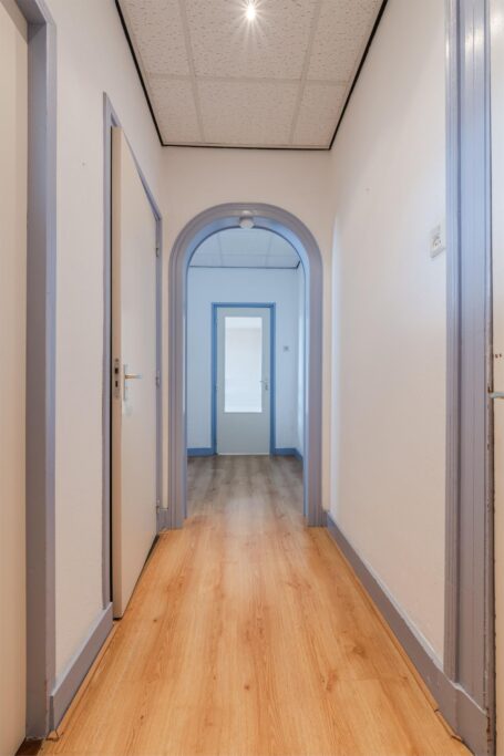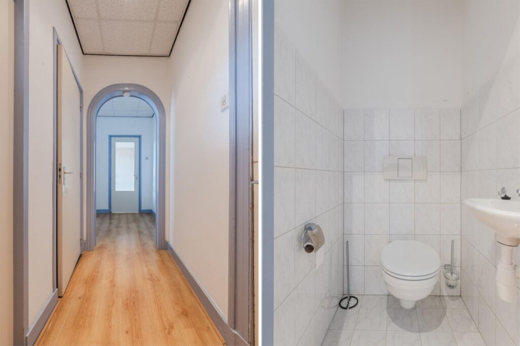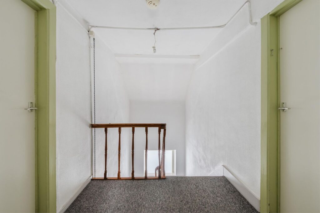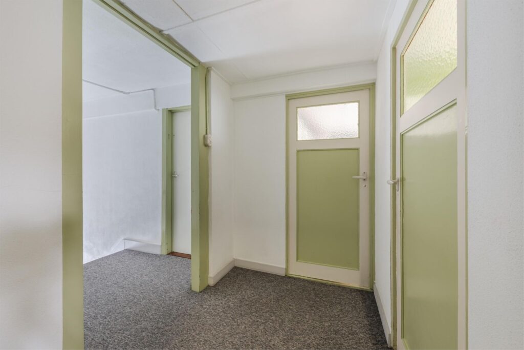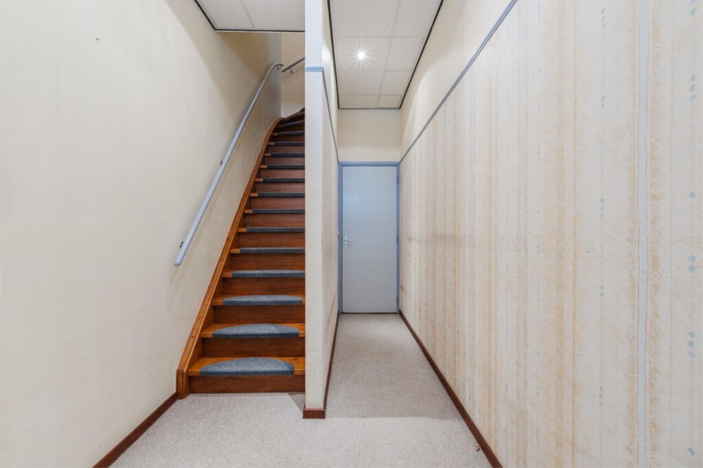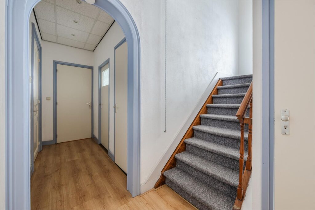 Eigen opgang met trap naar de eerste verdieping. Daarnaast beschikt de woning over een kelderruimte, ideaal als bergruimte of voor extra opslag.