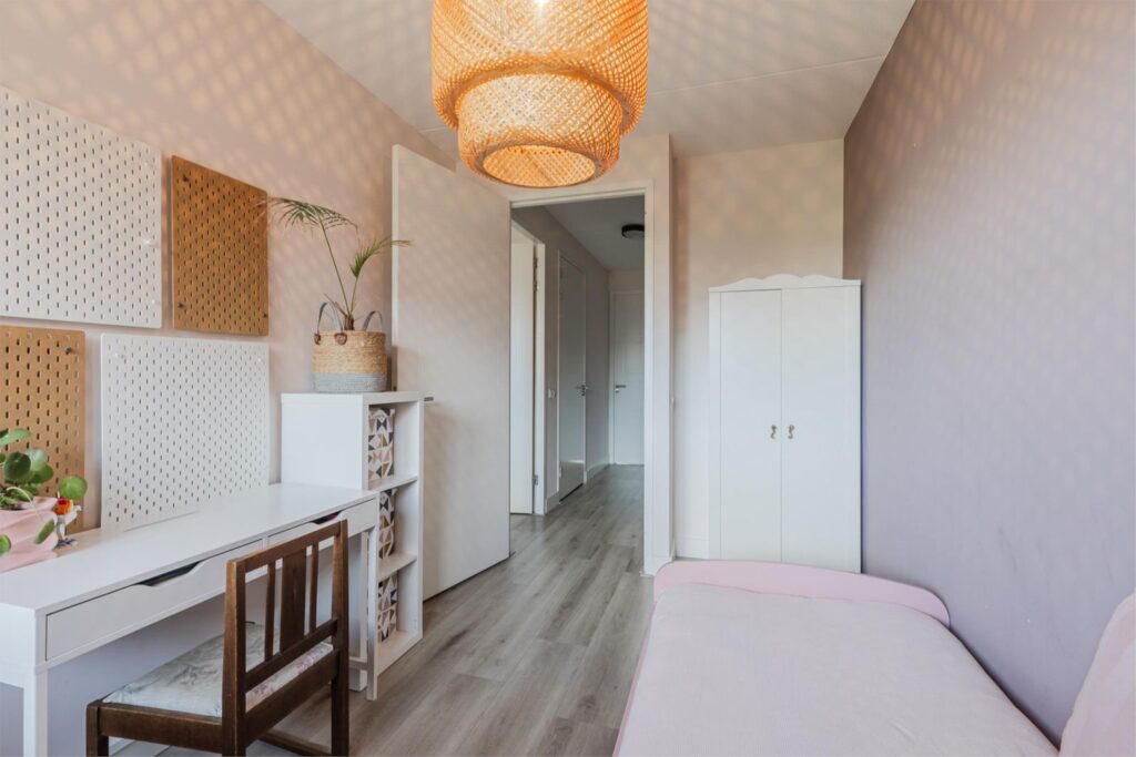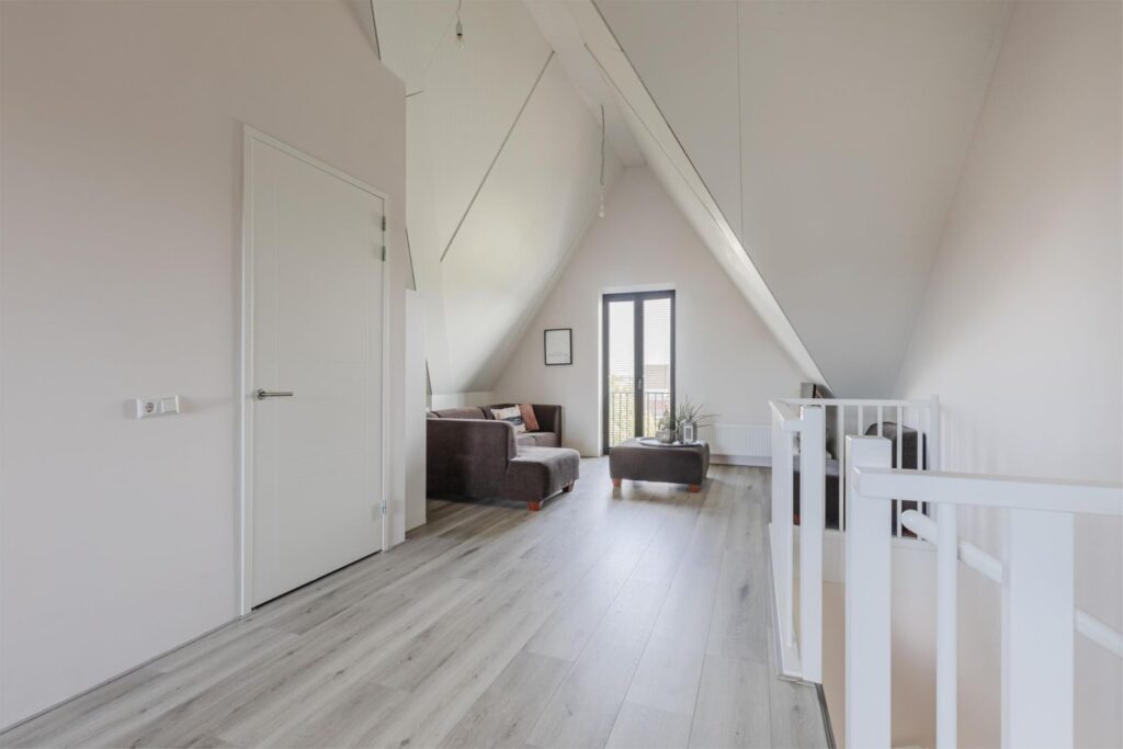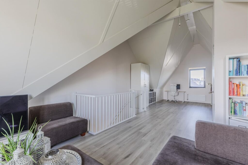 De tweede verdieping is een indrukwekkende ruimte die volledig afgewerkt is met een hoogwaardige laminaatvloer en een strak wit afgewerkte kap. Ook hier geven openslaande deuren aan de voorzijde toegang tot een Frans balkon met uitzicht over de Ringvaart en een overvloed aan daglicht.
