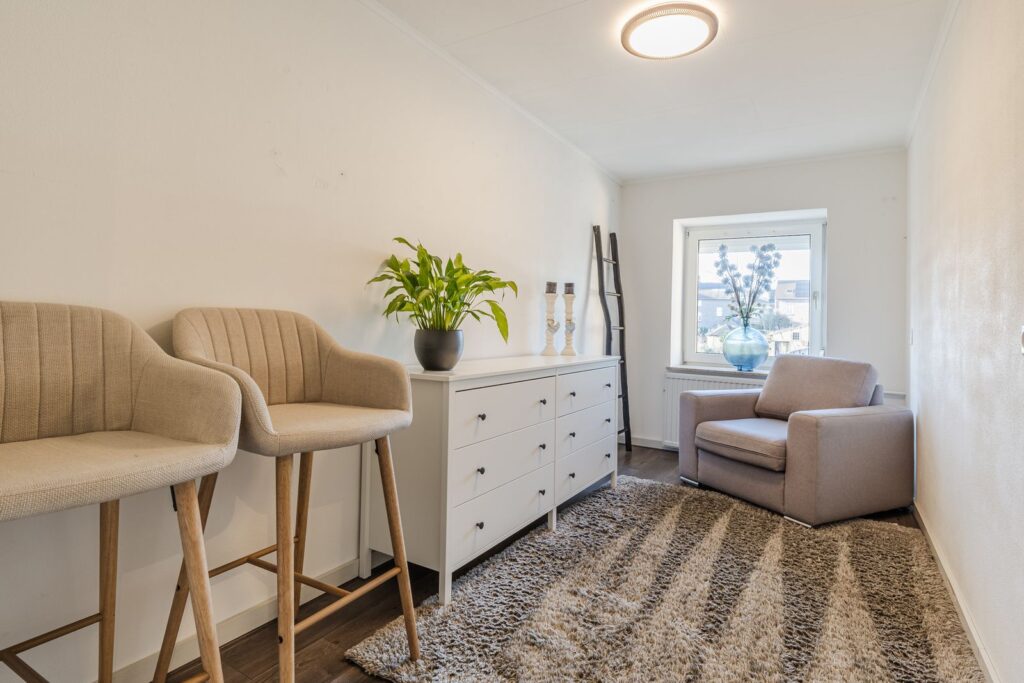 Ruime overloop met toegang tot 4 slaapkamers, berging/gangkast en royale badkamer. De slaapkamers aan de achterzijde zijn voorzien van rolluiken.