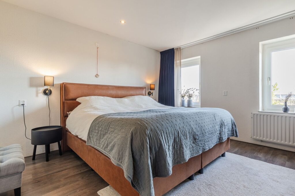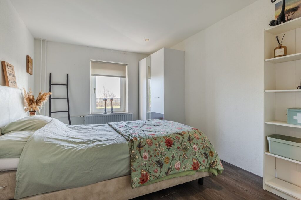 Slaapkamer voorzien van airco en deur naar de tuin. Tevens is deze ruimte te gebruiken als kantoor/werkruimte, bedrijf aan huis of mantelzorgwoning etc.