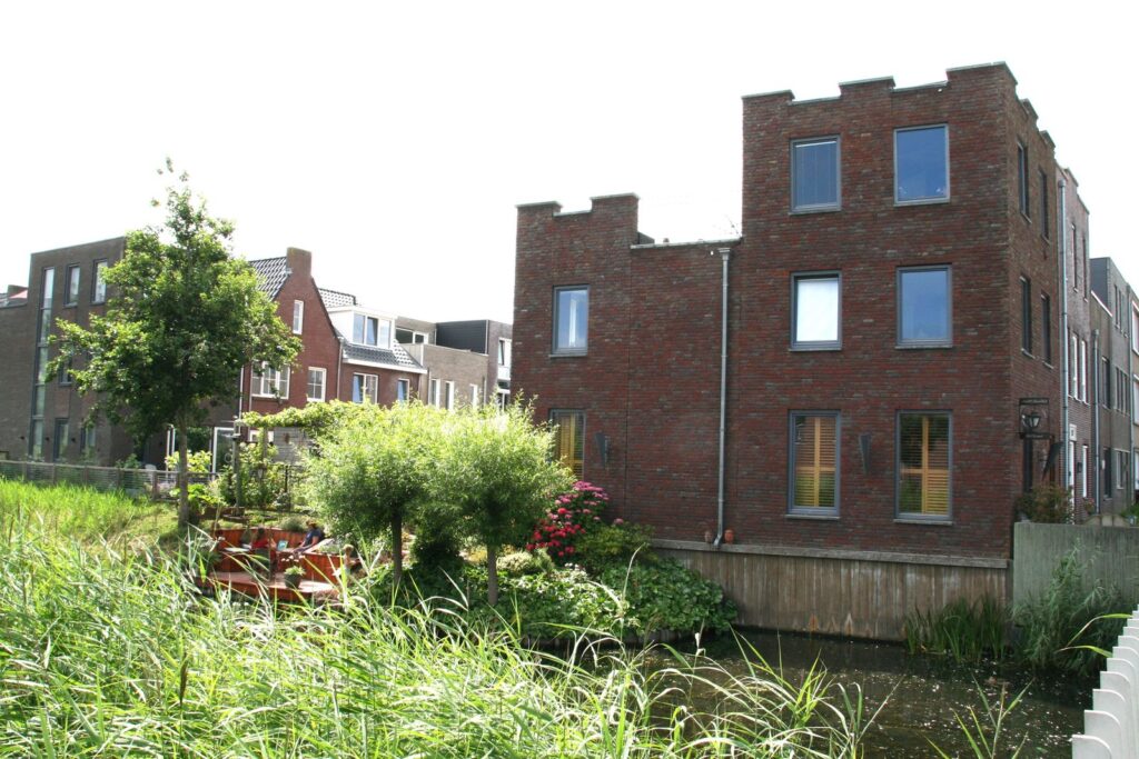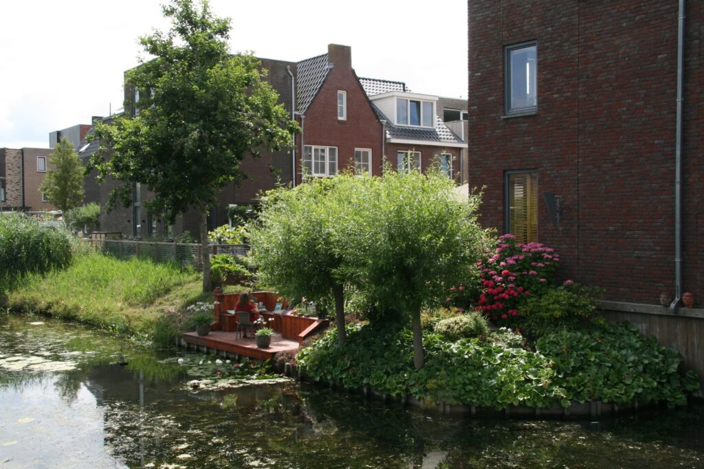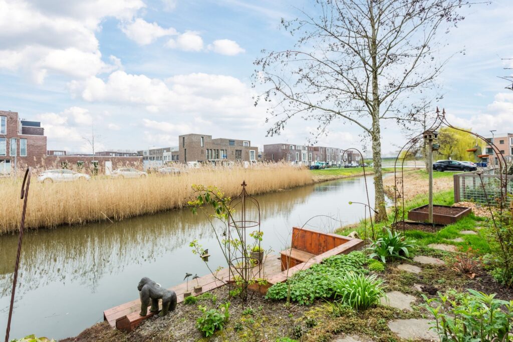 aan rustige weg, aan water, in woonwijk
