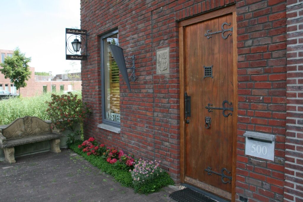 Aan de voorkant hebben we een geveltuin gemaakt. In de buurt staat het pand bekend als het "Kasteel". Tegenover de voordeur is een dierenweide met 3 pony's van een in de buurt gelegen kinderdagverblijf. De bushalte is om de hoek en winkels, scholen, eettentjes en zaterdagmarkt zijn op loopafstand.