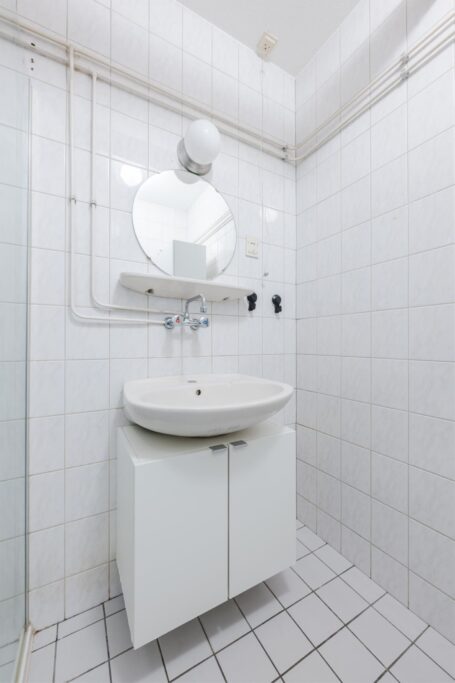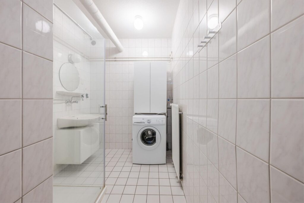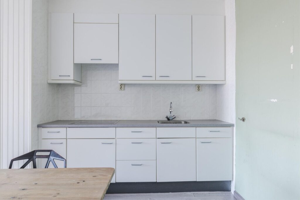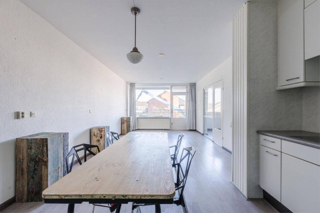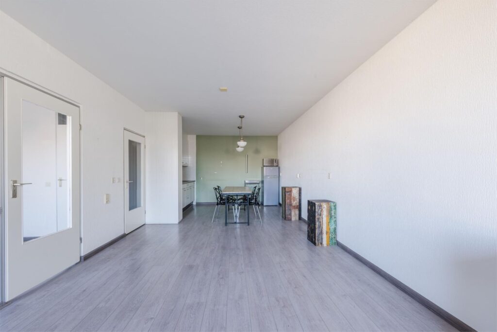 Binnenkomst in de hal met toegang tot de royale woonkamer met open keuken. De keuken is uitgerust met een 4-pits elektrische kookplaat, een koel-vriescombinatie en een combi-magnetron. Vanuit de woonkamer is het balkon op het zuidwesten te bereiken – een zeer aangename plek om van de middag- en avondzon te genieten.