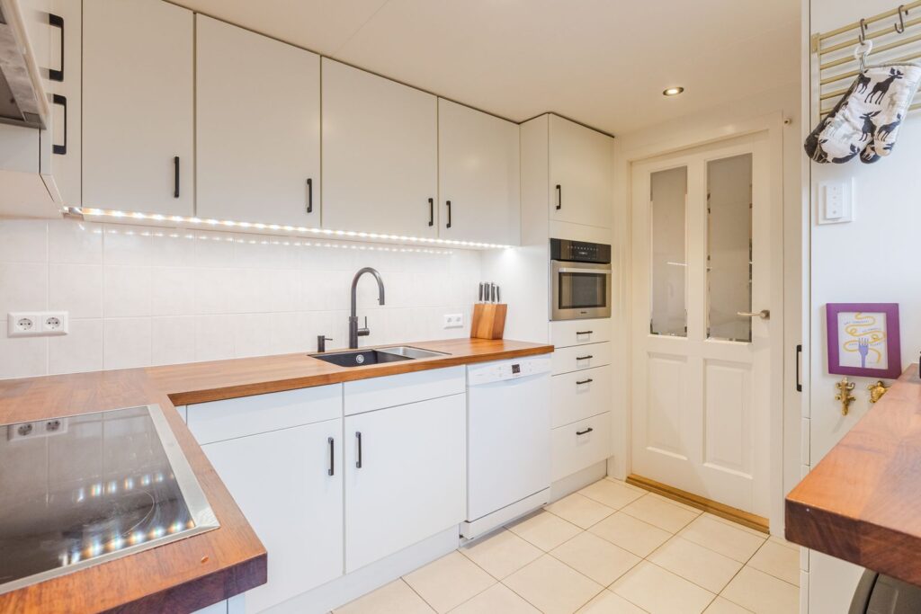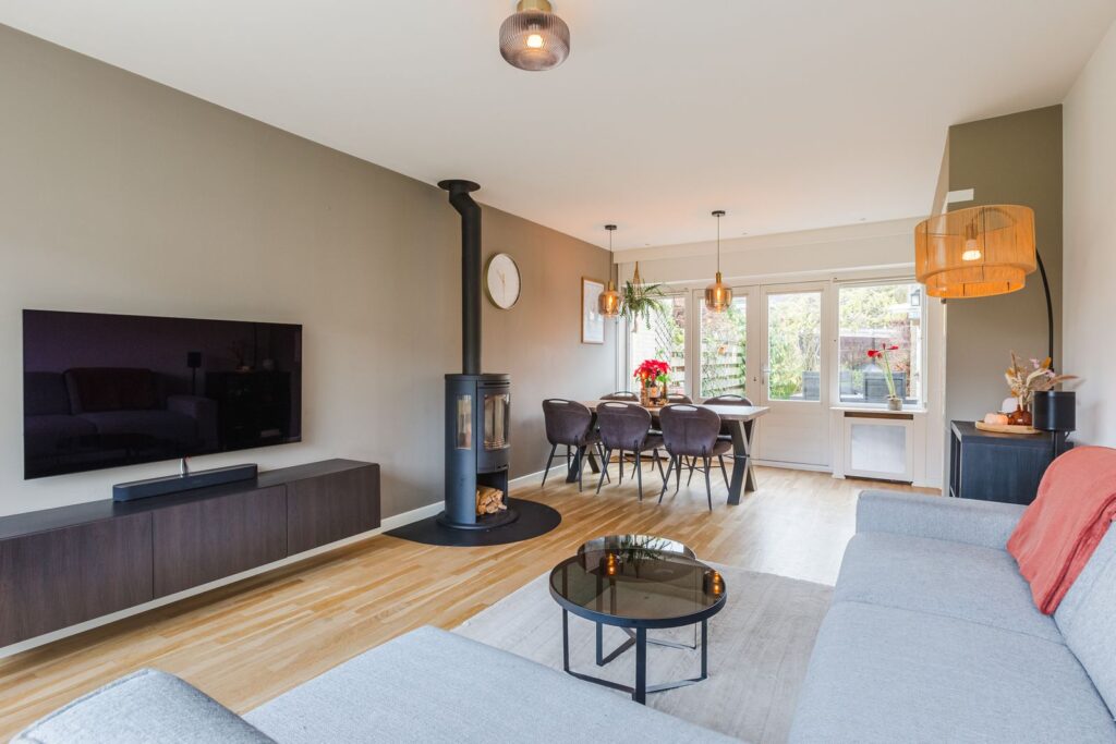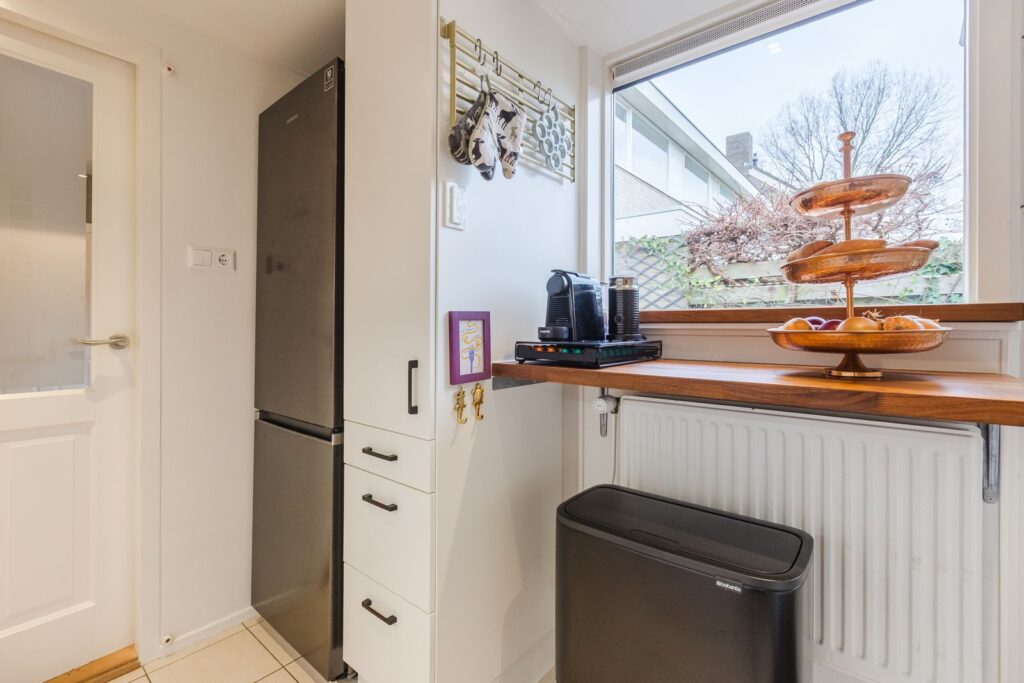 Indeling begane grond: entree/hal met meterkast, toilet met fontein, trapopgang en toegang tot de woonkamer. De woonkamer met houtkachel is straatgericht en vrij aan de voor- en achterzijde. De woonkamer is fijn verlicht en heeft een gestukt plafond met inbouwspots. De moderne, lichte keuken aan de tuinzijde is in een hoekopstelling geplaatst, heeft recent een upgrade gekregen en is voorzien van een inductiekookplaat, afzuigkap, vaatwasser en combi-oven/magnetron. De losstaande koel-/vriescombinatie wordt ter overname aangeboden. Via de keuken heb je toegang tot de bijkeuken. Hier is de opstelplaats voor het witgoed. Vanuit de keuken loop je de prachtige, groene achtertuin in. Indeling 1e verdieping: overloop met toegang tot drie ruime slaapkamers. De badkamer is voorzien van een douche, toilet, wastafelmeubel en designradiator. Er is tevens elektrische vloerverwarming aanwezig. Indeling 2e verdieping: via de vaste trap kom je op de zolderverdieping. Hier tref je een voorzolder met de cv-opstelling (Remeha, 2017) en een royale (hoofd)slaapkamer met vaste kasten. Door de dakkapellen aan de voor- en achterzijde is de slaapkamer goed bemeten en absoluut fraai te noemen! De dakkapel aan de voorzijde beschikt over elektrische rolluiken.