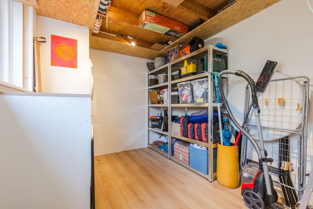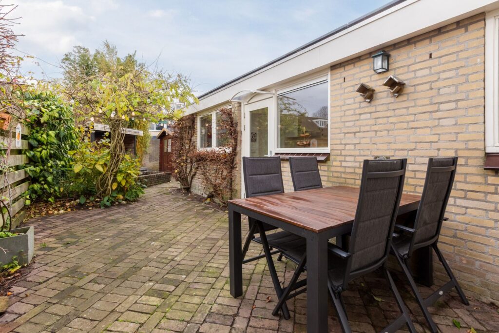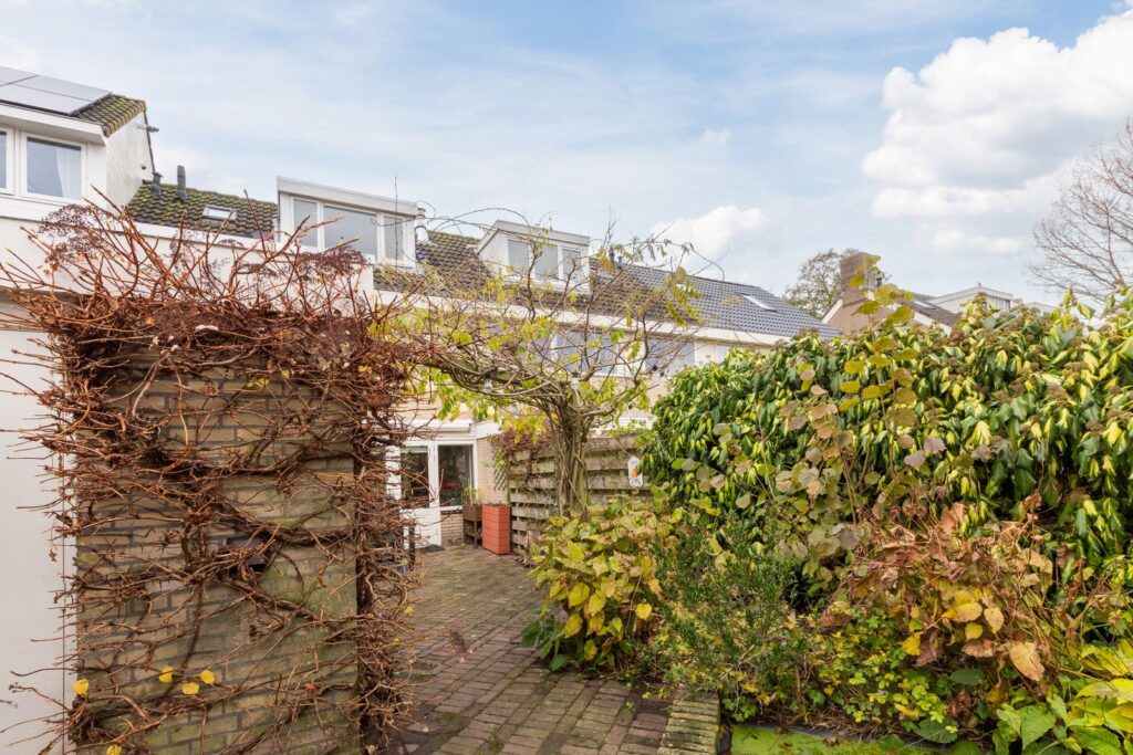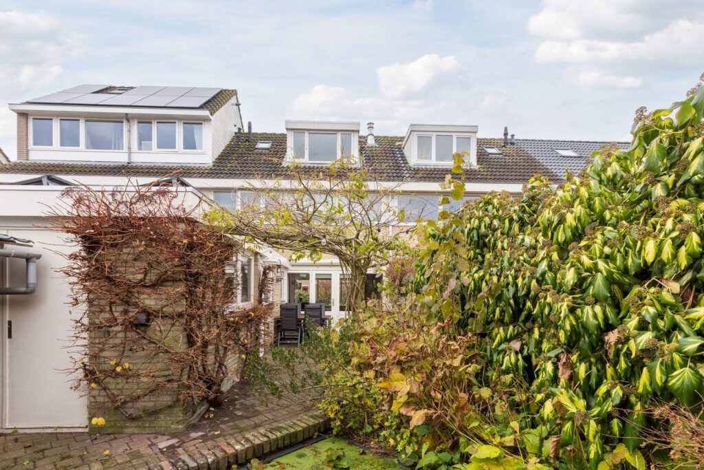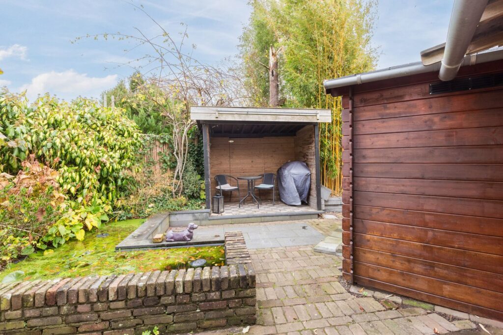 De woning bevat een fijne, groene achtertuin op het oosten. ’s Morgens een kopje koffie in de zon en ‘s middags genieten van het zonnetje achterin de tuin. Dat kan hier allemaal in deze oase van groen! Er is een houten berging aanwezig voor de tuinspullen en de fietsen. Tevens is er achterin de tuin een overkapping met een handige opbergplek.