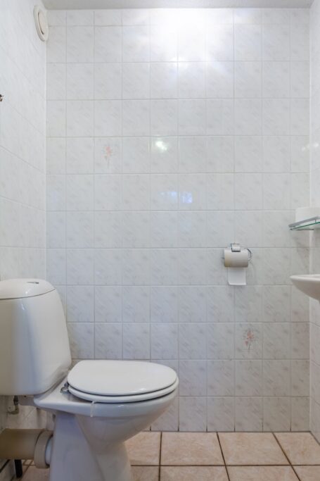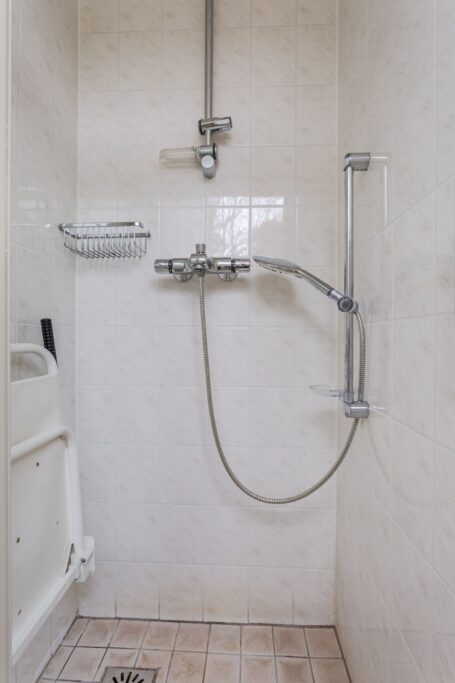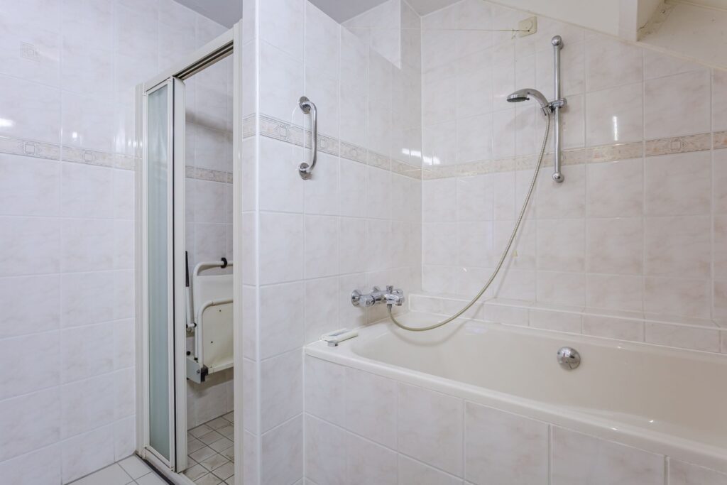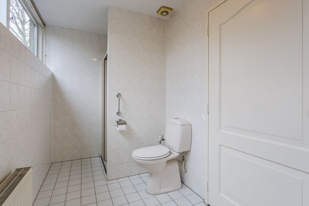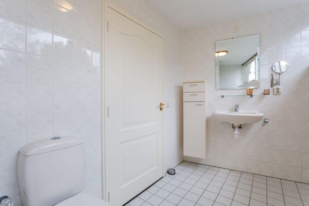 De royale badkamer op de bovenverdieping gelegen, heeft een aparte douchecabine, een ligbad met massagestralen, een toilet en aparte wastafel en een badkamer kast.