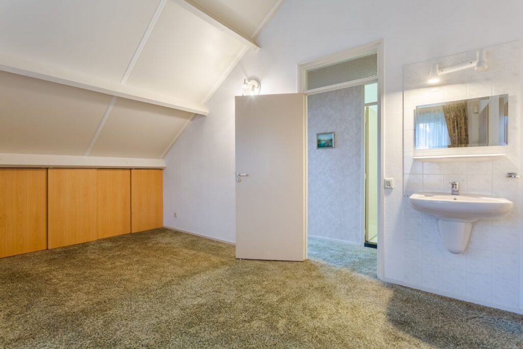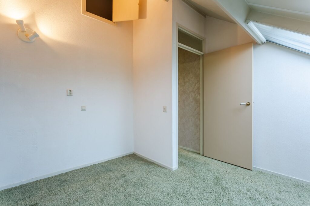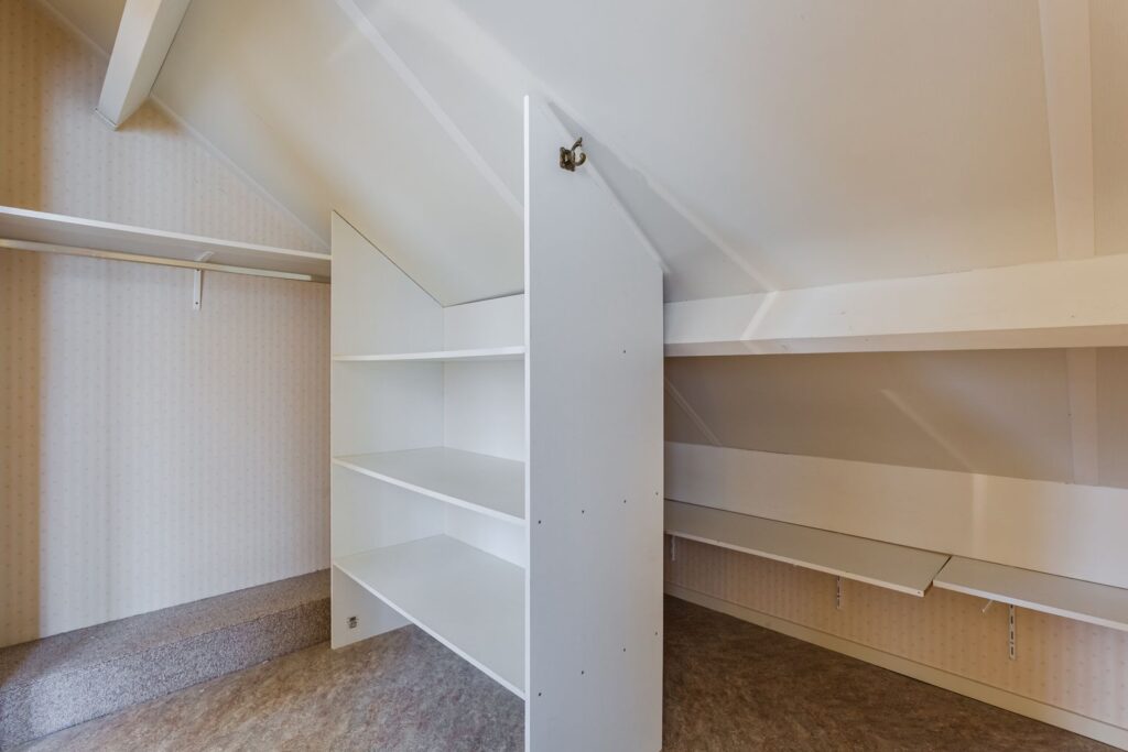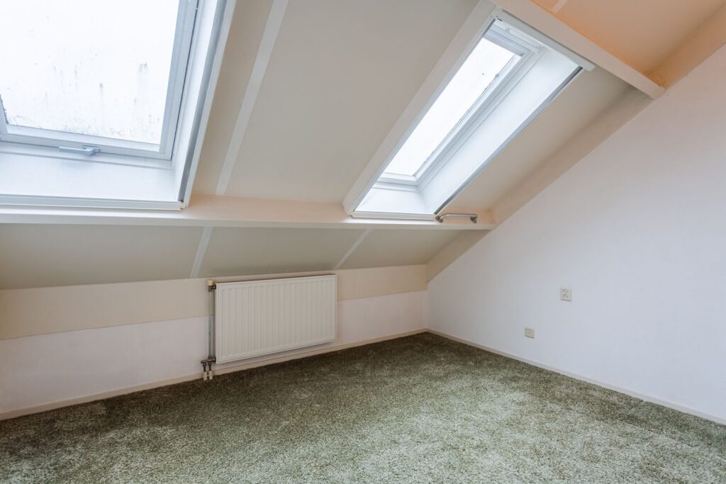 Via de hal komt u in de kleinere kamer, voorzien van twee Velux dakramen. De kamer is ruim genoeg als slaapkamer maar is ook geschikt als hobby- of logeerruimte en er is kleine zolderberging.