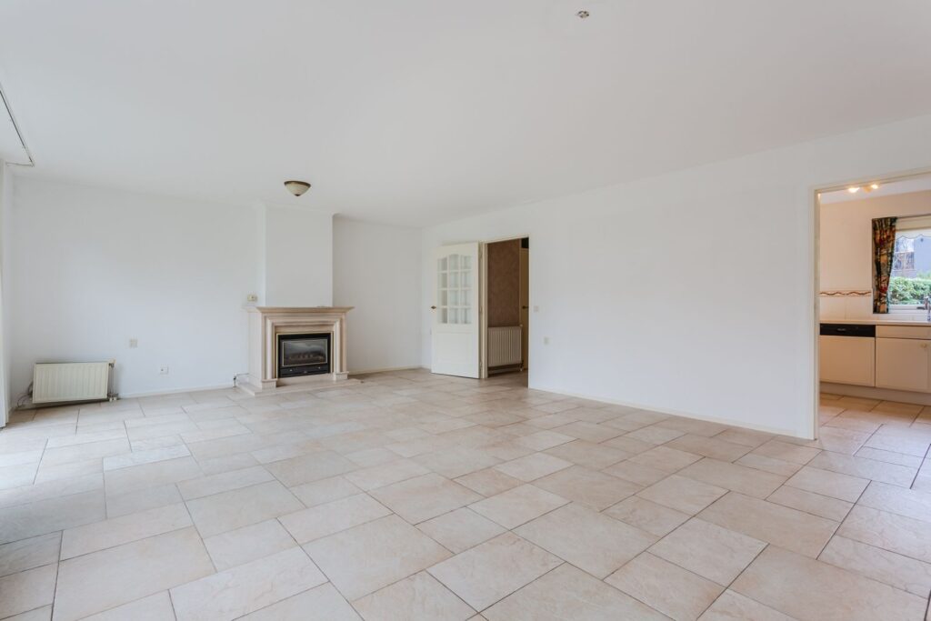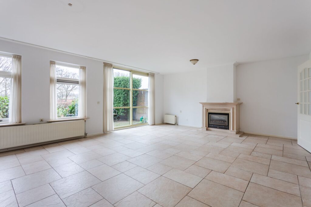 ruime woonkamer met schuifpui en prachtige marmeren schouw,