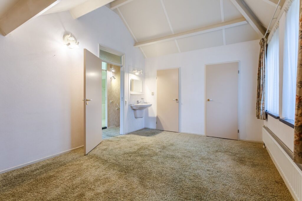 Met de trap of traplift komt u op de bovenverdieping. Boven is er in de grootste slaapkamer plaats voor een tweepersoonsbed en er is veel bergruimte. Er is een aparte bergruimte onder de schuine kap over de gehele breedte van de kamer, een vaste wastafel en een grote inloopkast. Deze inloopkast voorzien van planken en rails, voor nog meer bergruimte, is tevens geschikt als garderobekast voor meerdere personen. De kamer is voorzien van twee grote ramen met uitzicht op de tuin en het prachtige pand van de voormalige Jonker Schimmelpenninck.
