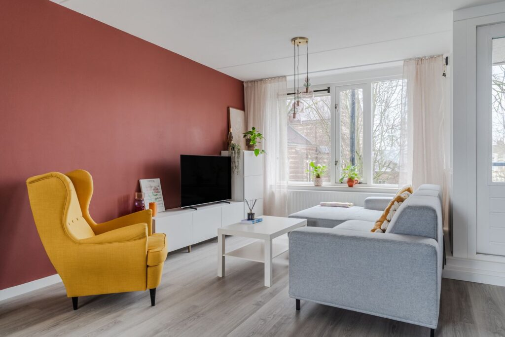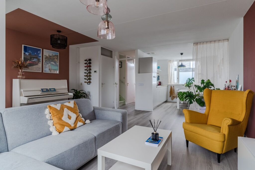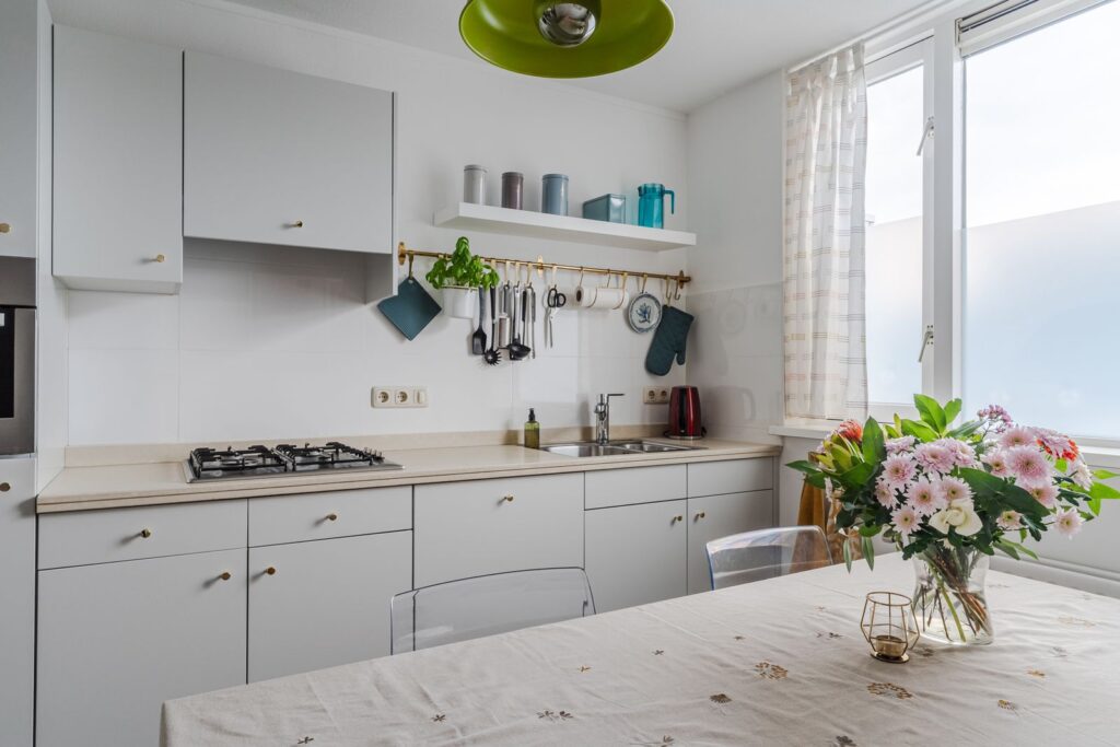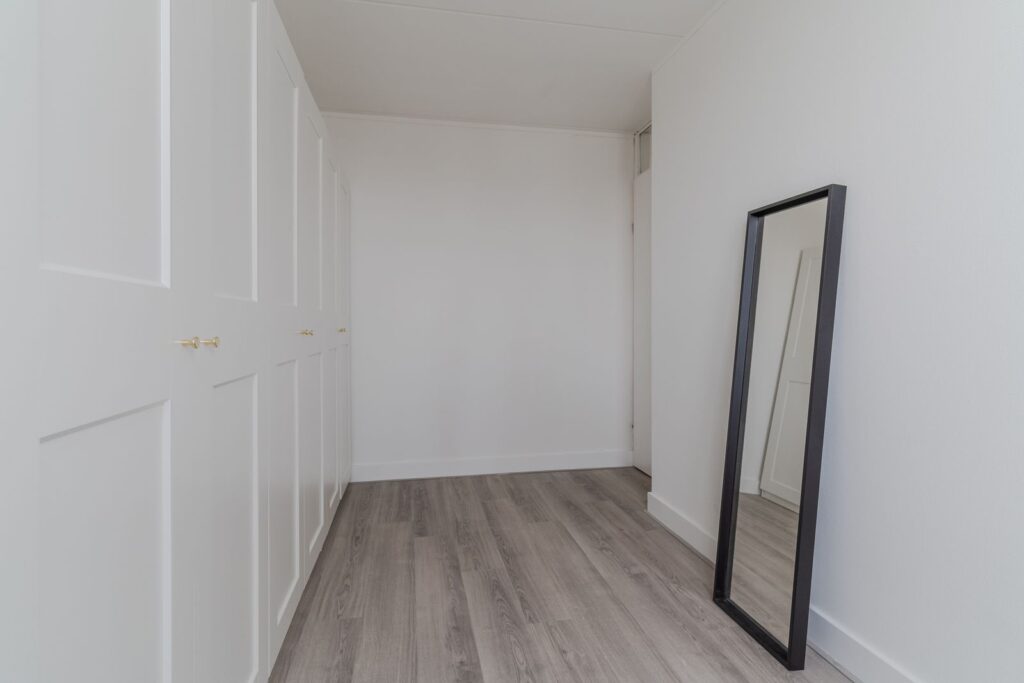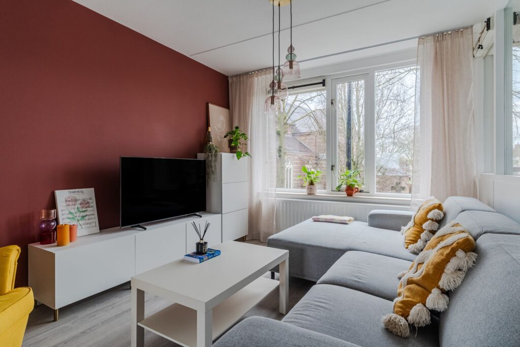 Bij binnenkomst in de hal vind je de meterkast en een separate toiletruimte. Vanuit hier loop je door naar de woonkamer. Deze leefruimte is opvallend licht door de ramen aan twee zijden en biedt voldoende plek voor zowel een comfortabele zithoek als een ruime eettafel. Vanuit de woonkamer heb je toegang tot het balkon met uitzicht op het groen.