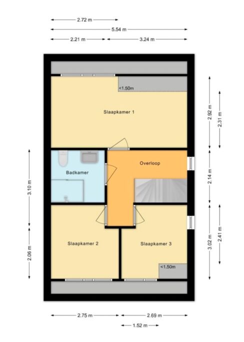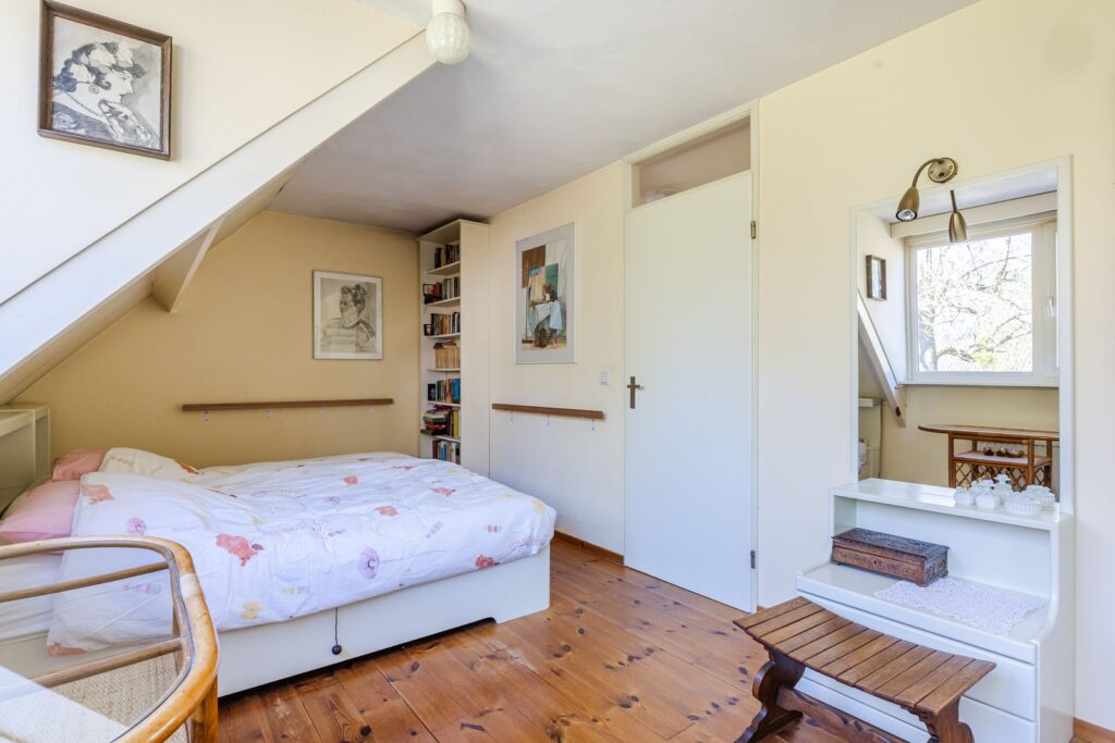 Drie slaapkamers, twee aan de voorzijde en een ruime ouderslaapkamer aan de achterzijde (ca 17 m2), allen met dakkapel. De slaapkamers zijn alle drie licht dankzij de grote raampartijen. Gehele verdieping voorzien van houten vloer.