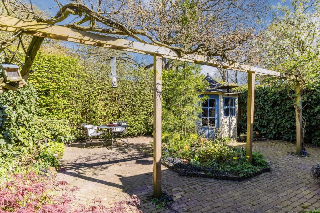 De goed onderhouden tuin is voorzien van straatwerk en hagen, onderhoudsarm en de achtertuin is speels ingericht met tweetal terrassen en tuinhuisje. De tuin ligt beschut en is daardoor een toevluchtsoord voor diverse vogelsoorten en af en toe een eekhoorn.