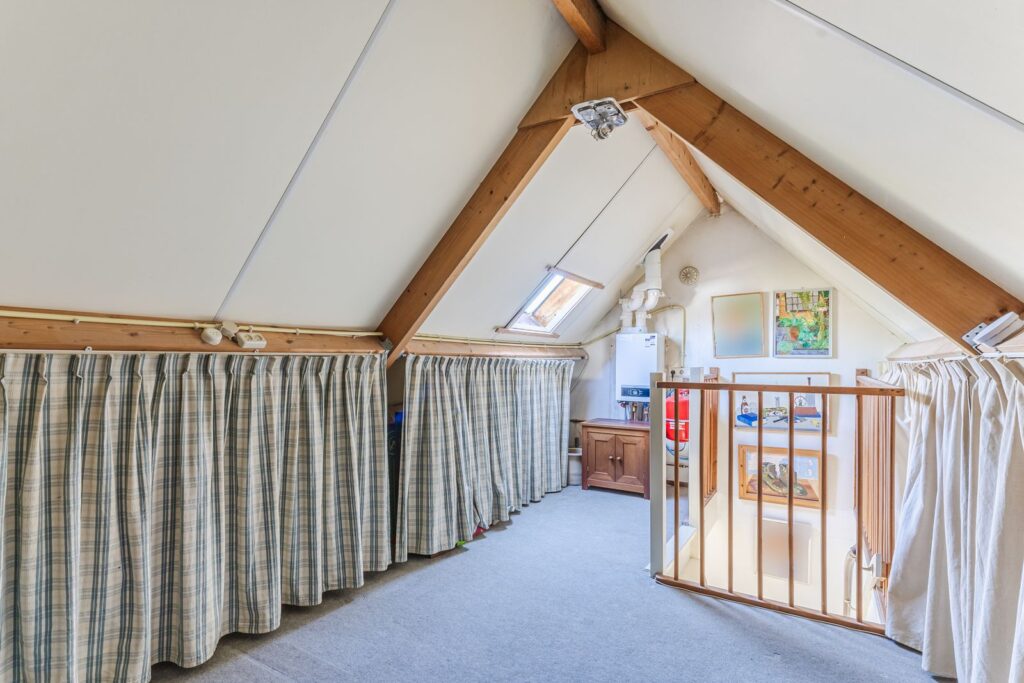 Door middel van een vaste trap te bereiken zolderruimte, ingericht als hobbyruimte (mogelijkheid voor een vierde slaapkamer) en hier opstelling van de CV combiketel (2020).