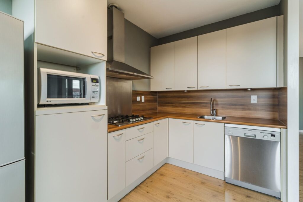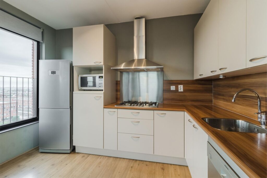 Originele keuken: voorzien van vaatwasser, losstaande koelkast, magnetron, afzuigkap en magnetron