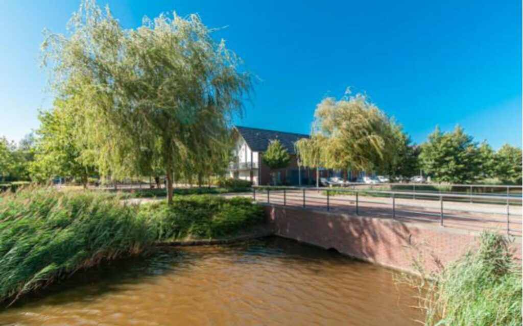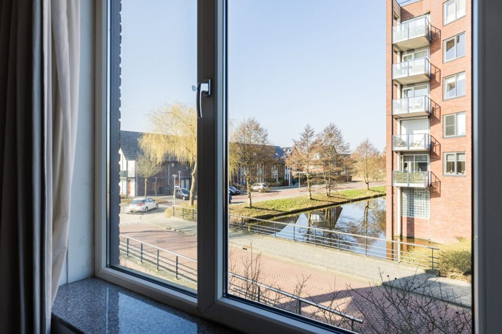 aan rustige weg, aan water, in woonwijk, vrij uitzicht