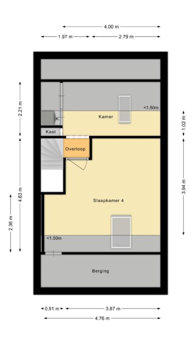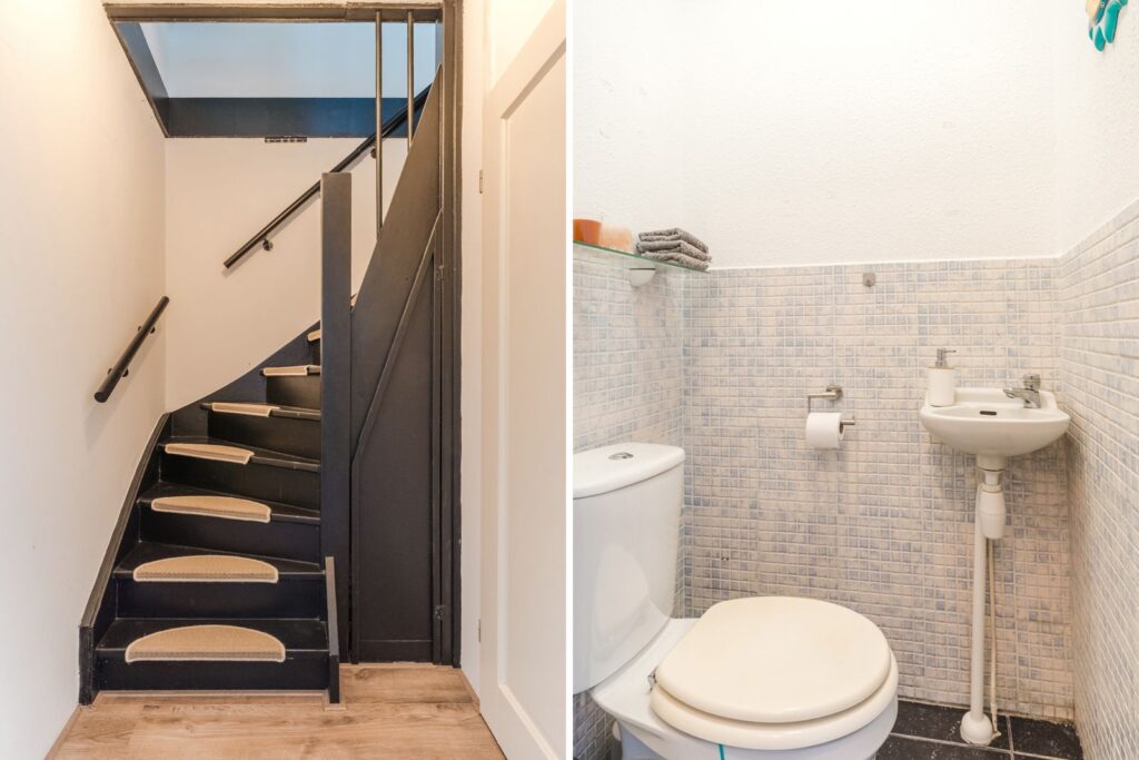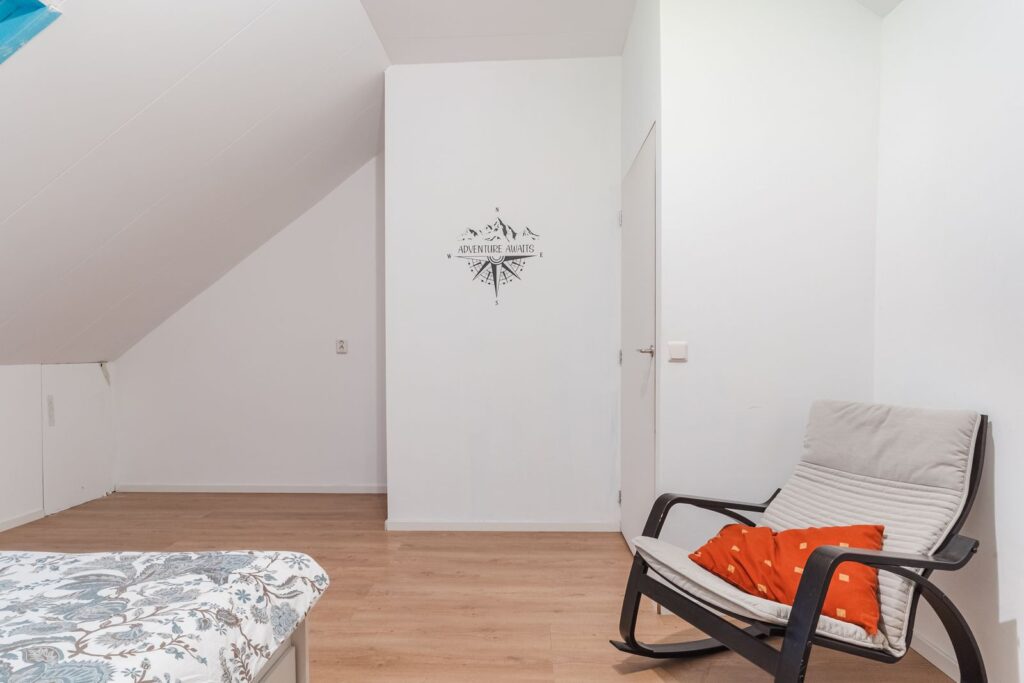 Tweede verdieping: Overloop met toegang tot een praktische kamer met kast voor de cv-opstelling en wasmachineaansluiting. Daarnaast vind je hier een verrassend ruime vijfde slaapkamer aan de voorzijde, perfect als master bedroom, werkruimte of chillkamer voor tieners.