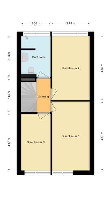 Eerste verdieping: Overloop met toegang tot drie fijne slaapkamers, ideaal voor een groeiend gezin, een thuiswerkplek of hobbykamer. De badkamer is compleet uitgevoerd met douche, wastafel en tweede toilet.