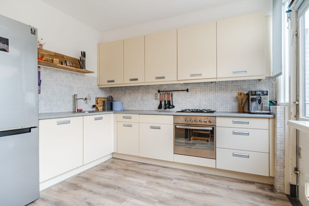 - Keuken voorzien van gasfornuis, afzuigkap, oven, koelkast en vaatwasser