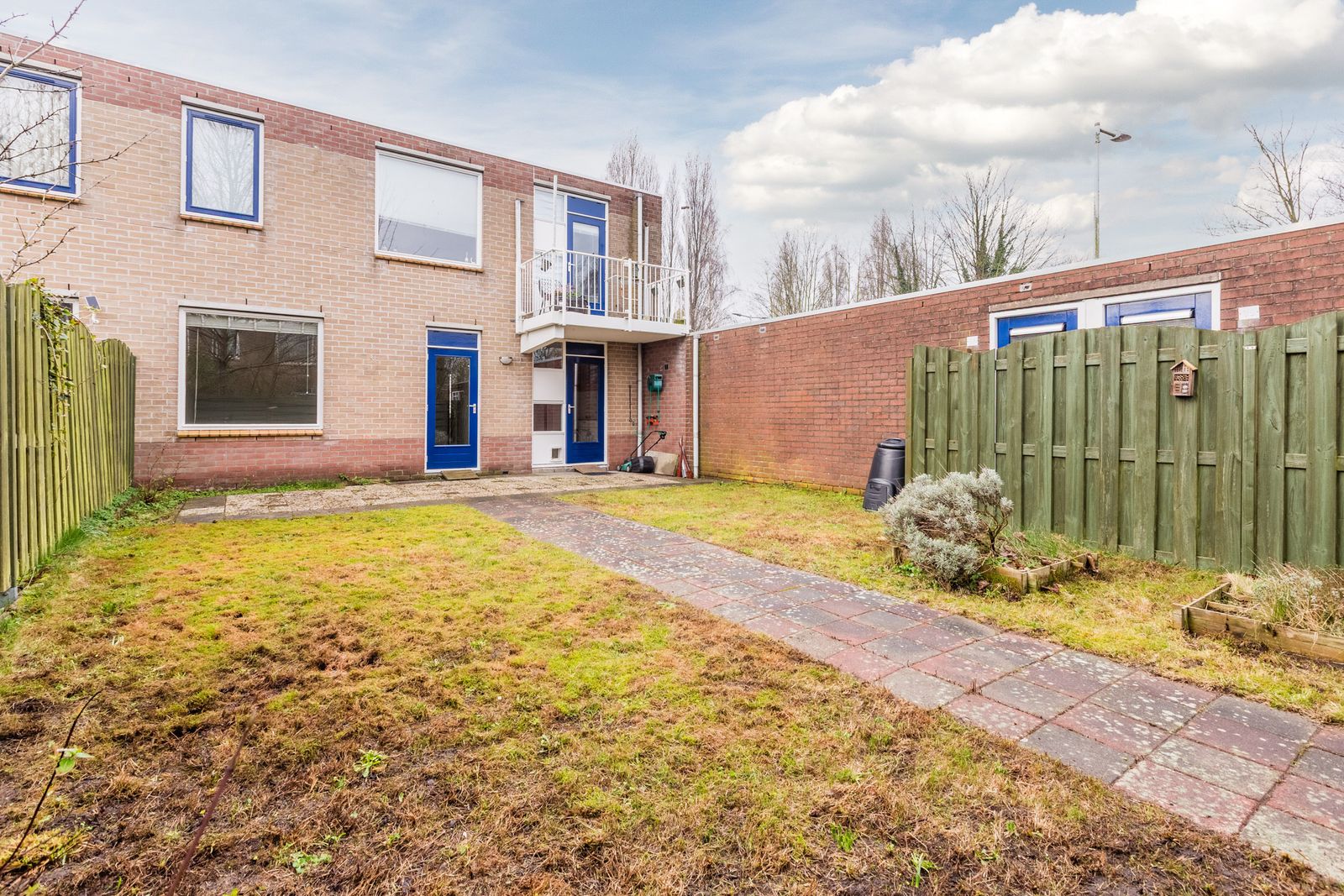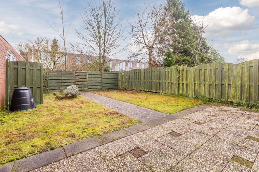 The well-enclosed backyard of approximately 81 m² is quiet and sheltered. It offers plenty of possibilities for landscaping and is a great place to sit and relax outdoors. Thanks to its size, multiple seating areas can be created in both sun and shade. There is also a practical back entrance.
