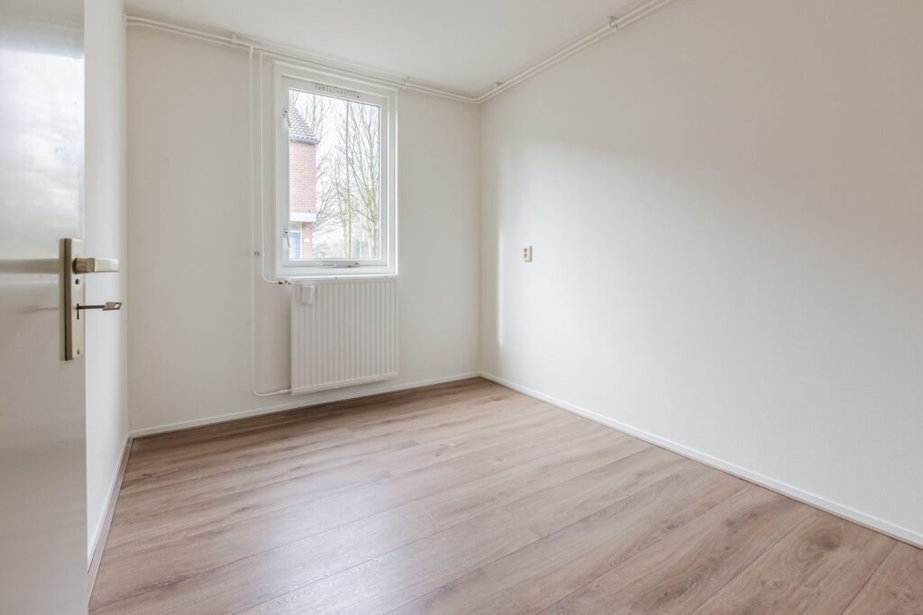 De tweede slaapkamer, ook aan de voorzijde, is tevens een ruime kamer maar kan ook worden gebruikt als studeerplek, kinderkamer of als inloopkast. Beide slaapkamers grenzen aan de voortuin die aan een wandelpad grenst. Er is dus geen verkeershinder. De slaapkamers en badkamer zijn recent (2026) geschilderd en een tegelwand in de badkamer is geheel vernieuwd.