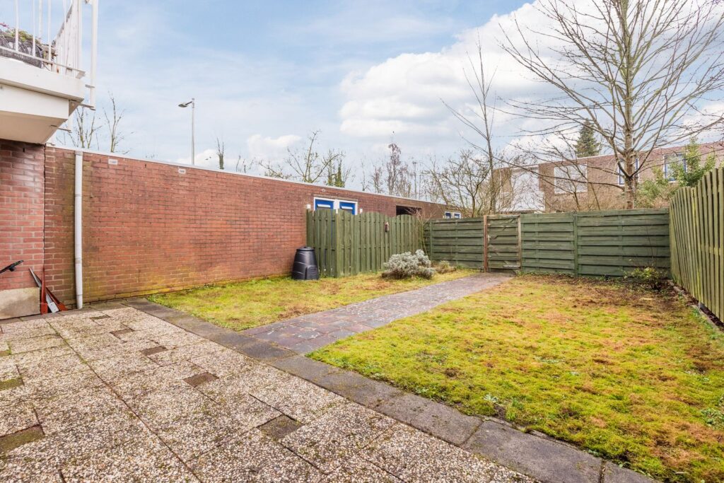 De goed omheinde achtertuin van maar liefst ca. 81 m2, ligt rustig en beschut. De tuin biedt allerlei mogelijkheden voor inrichting en is een fijne plek om buiten te zitten en te ontspannen. Vanwege de grootte van de tuin zijn er verschillende plekken te creëren zowel in de zon als schaduw. Er is tevens een praktische achterom.