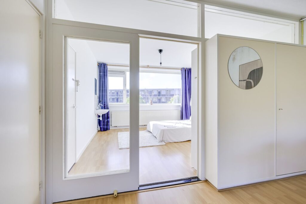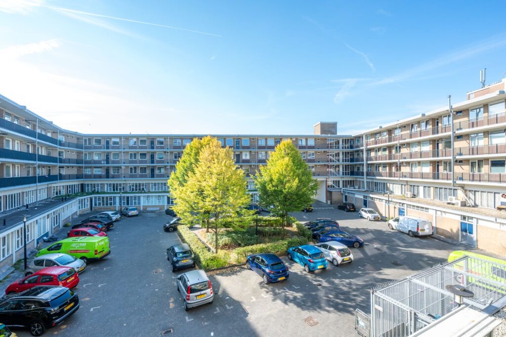 Entree van de woning, intercom met beeldscherm, ruime hal met toegang tot alle vertrekken. De woonkamer is royaal en heerlijk licht dankzij de grote raampartijen, met voldoende plek voor een zit- en eethoek. De aparte keuken is praktisch ingedeeld en voorzien van diverse inbouwapparatuur waaronder een 5-pits gaskookplaat, afzuigkap, combimagnetron, grote koelkast met vriesvak en een vaatwasser. Vanuit de keuken kijk je uit op het binnenterrein Vanuit de woonkamer geniet je van veel licht en een vrij uitzicht. Er zijn drie slaapkamers van goed formaat. Eén slaapkamer beschikt over een eigen wastafel, en vanuit een andere slaapkamer is er directe toegang tot het balkon. De badkamer is voorzien van een ruime inloopdouche, wastafelmeubel, wandradiator, inbouwspots en wasmachine-aansluiting. Het toilet is separaat en netjes betegeld.