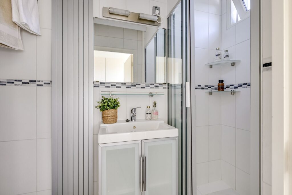 V Modern bathroom with walk-in shower