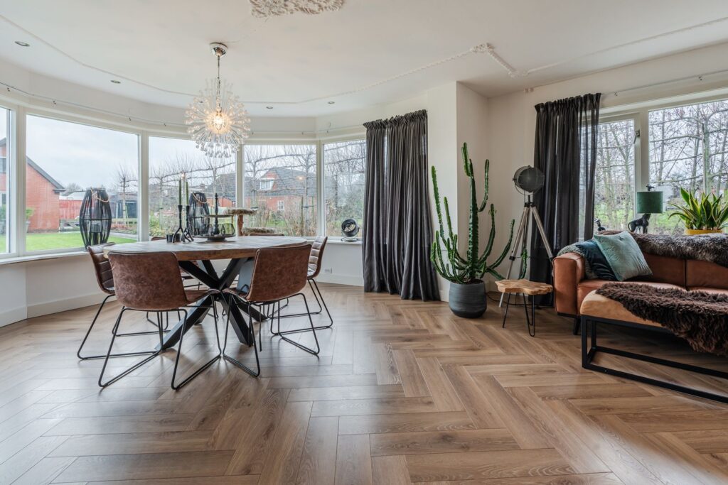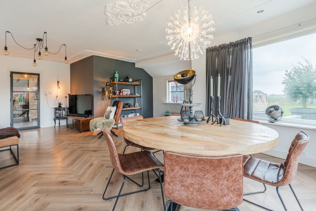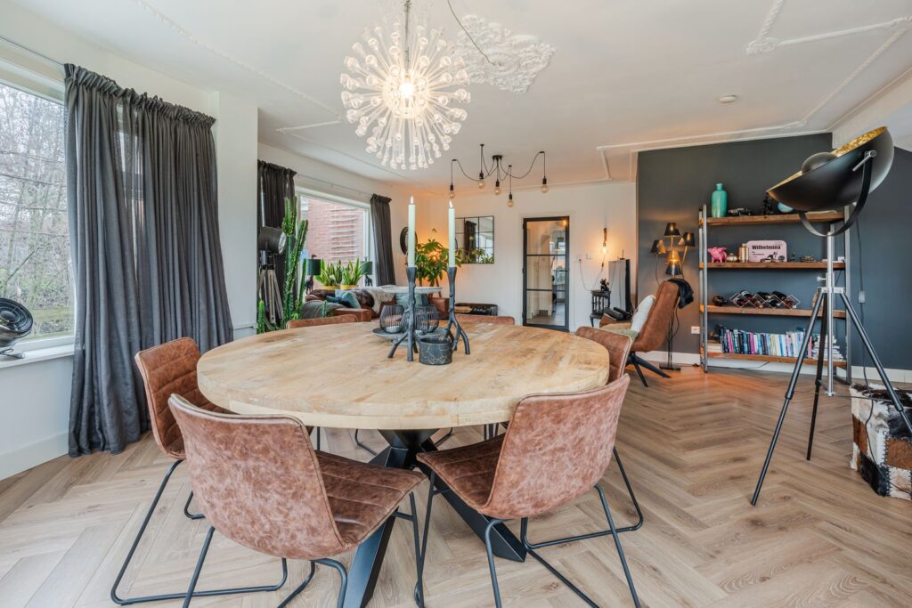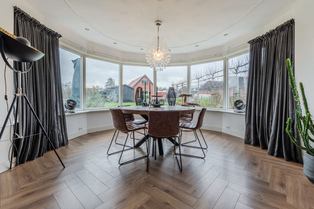 Vanuit de hal loopt u door naar de lichte woonkamer, waar de prachtige serre direct in het oog springt. Dankzij de grote raampartijen geniet u hier van een mooie lichtinval en een fijne verbinding met buiten. Aansluitend bevindt zich de gezellige eethoek, een ideale plek voor lange diners en gezellige avonden met familie en vrienden.
