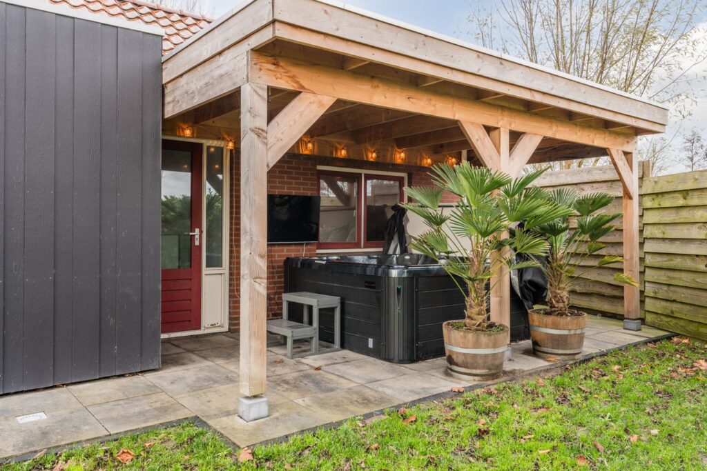 Siertuin, nieuwe terrassen en jacuzzi onder de overkapping