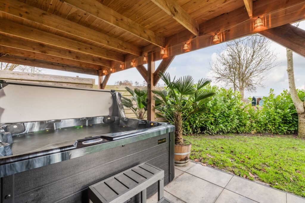 De netjes aangelegde tuin met nieuwe terrassen, siertuin en een jacuzzi onder de overkapping maken het buitenleven compleet. Er is altijd wel een plekje te vinden om heerlijk in de zon of schaduw, uit de wind te zitten!