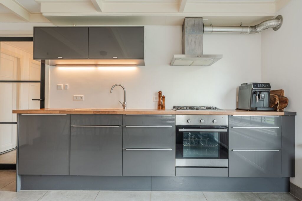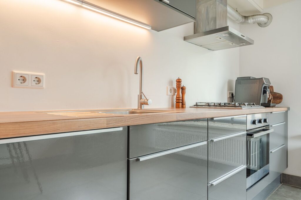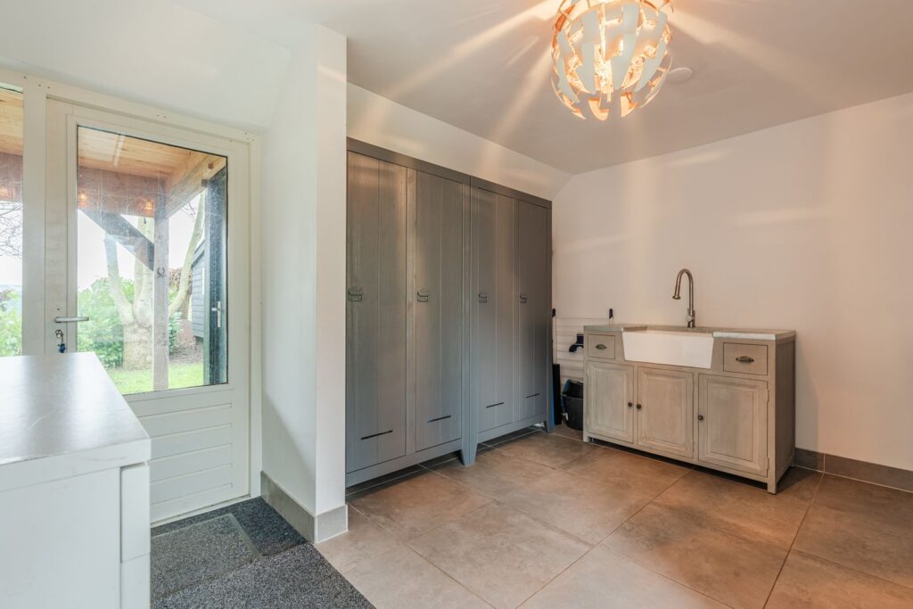 Bijkeuken met genoeg opbergruimte en wastafel