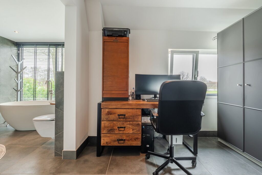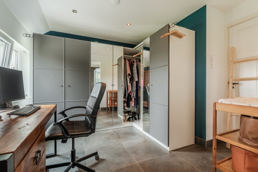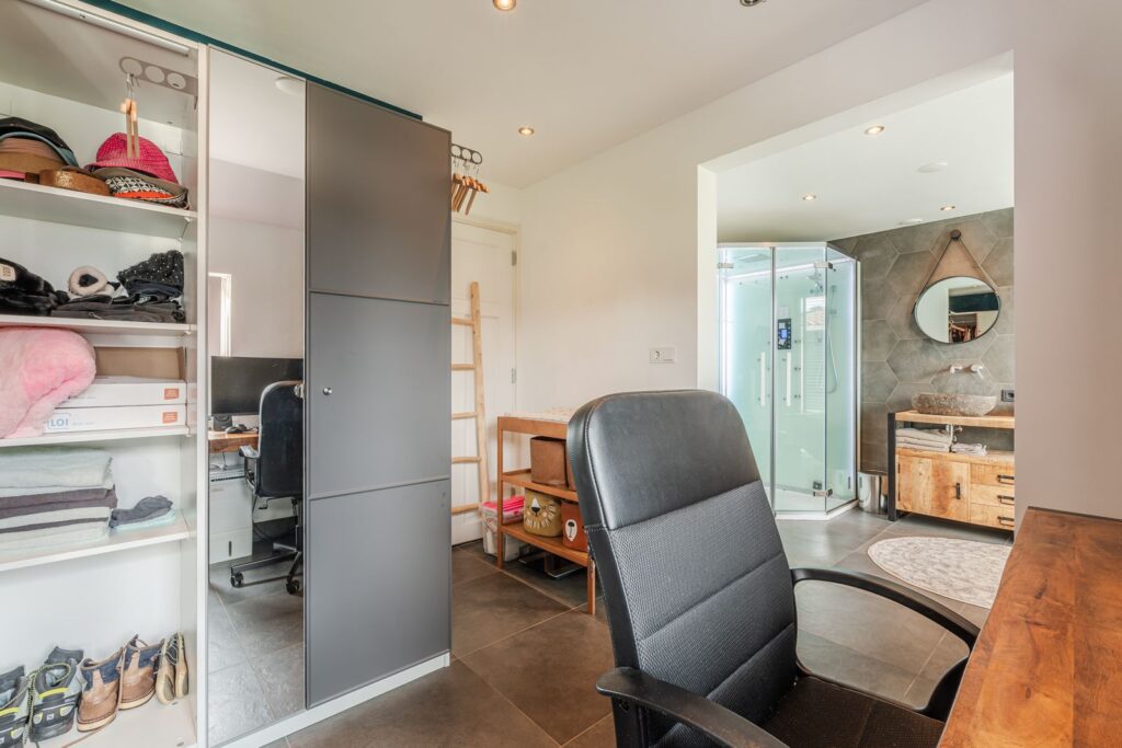 Uniek aan deze woning is de badkamer op de begane grond, evenals de ensuite “walk-in closet”. Dit biedt volop comfort en maakt gelijkvloers wonen mogelijk.